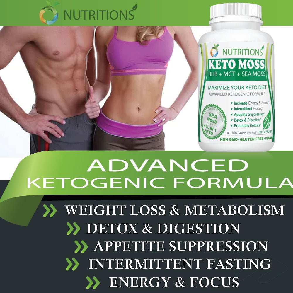 ALL IN 1 KETO-The only keto weight loss supplement that combines everything you need to start and do the keto diet right. Our advance formulation has the right amount of BHB Salt and MCT Powder to get you into ketosis. Combined with sea moss, you can enjoy the keto diet without feeling tired and beating the keto flu.Sea Moss- Did you know that sea moss contains 92 vitamins and minerals that your body needs to thrive? With sea moss added to your keto diet, you can feel more energize and focus. Most people on the keto diet will feel tired and sluggish because their body is deprived of many nutrients. Not only is sea moss nutritional for your body, it can help with detox and digestive issues which usually occur when doing the keto diet. Replenish your body with natural wild crafted sea moss from the sea.BHB Salt-While on Keto, it is important to have and sustain beta-hydroxybutyrates that helps the body reach a ketogenic state. This may reduce fatigue and accelerate your body's transition to burning fat for fuel. Reach ketosis faster and stay there!MCT POWDER- MCT or medium-chain triglycerides are fat fat molecules found in coconut oil and are sources of fuel for the body. MCTs are more easily digested than other fats, meaning your body can use them as a faster source of energy. They can also be converted into ketones when carb intake is very low. For those on a ketogenic diet, consuming MCT oil can help support your ketogenic lifestyle and goals.WHY CHOOSE KETO MOSS-Promotes weight loss and metabolism, aids in detox and digestion, appetite suppression, provides energy and nutrients during intermittent fasting, restore energy and focus. All you need is one keto supplement during your keto diet. keto Moss is Vegan Friendly, Non GMO, and Gluten Free. Our supplements are proudly made in the USA in an FDA registered and GMP certified facility. Ingredients are third party tested for purity and potency.