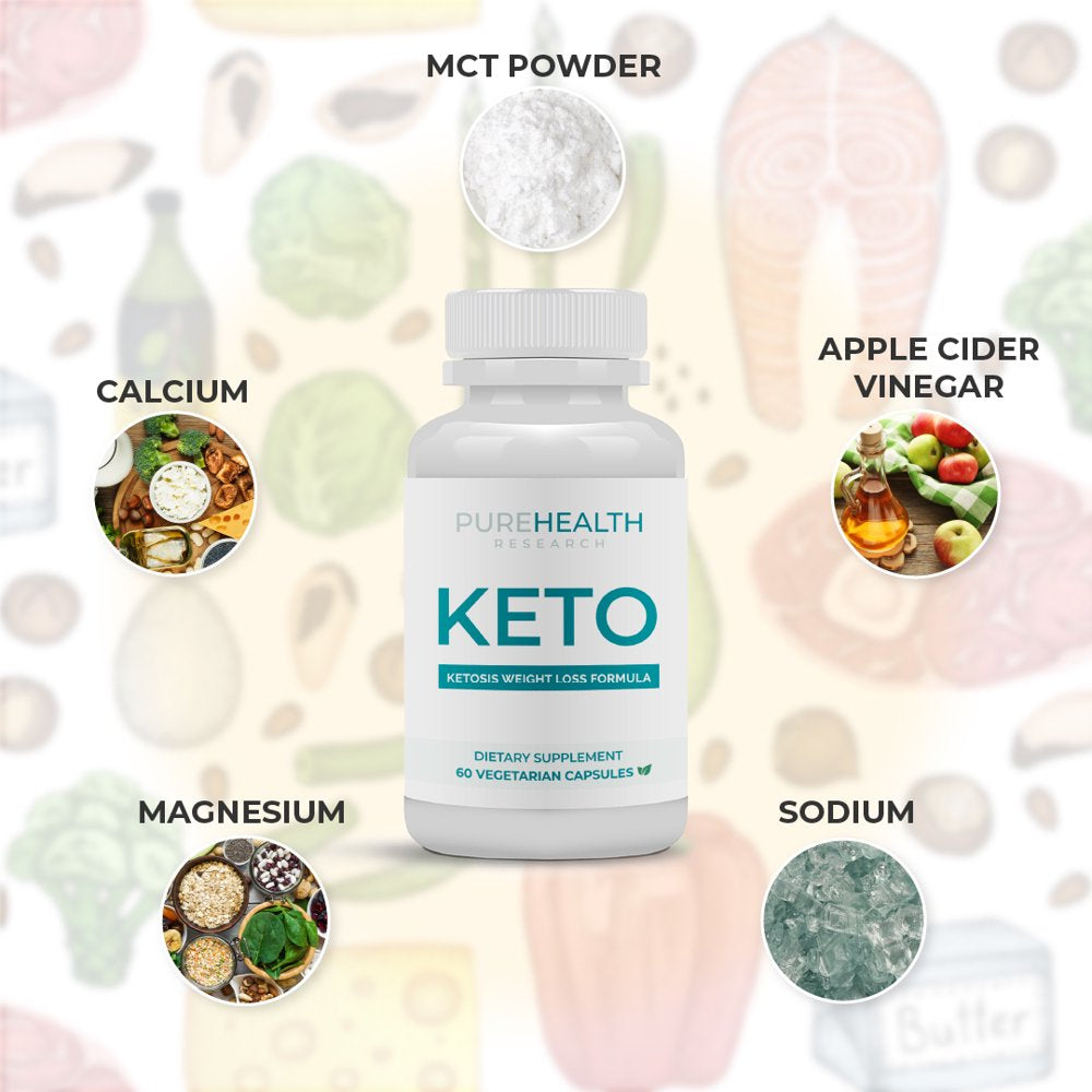 - SUPERIOR QUALITY ALL-NATURAL ingredients. KETO helps your body to instinctively burn energy that sheds weight consistently, safely, and more easily. The critical ingredients of KETO by PureHealth Research are Calcium, Magnesium, Sodium, and MCT Powder.