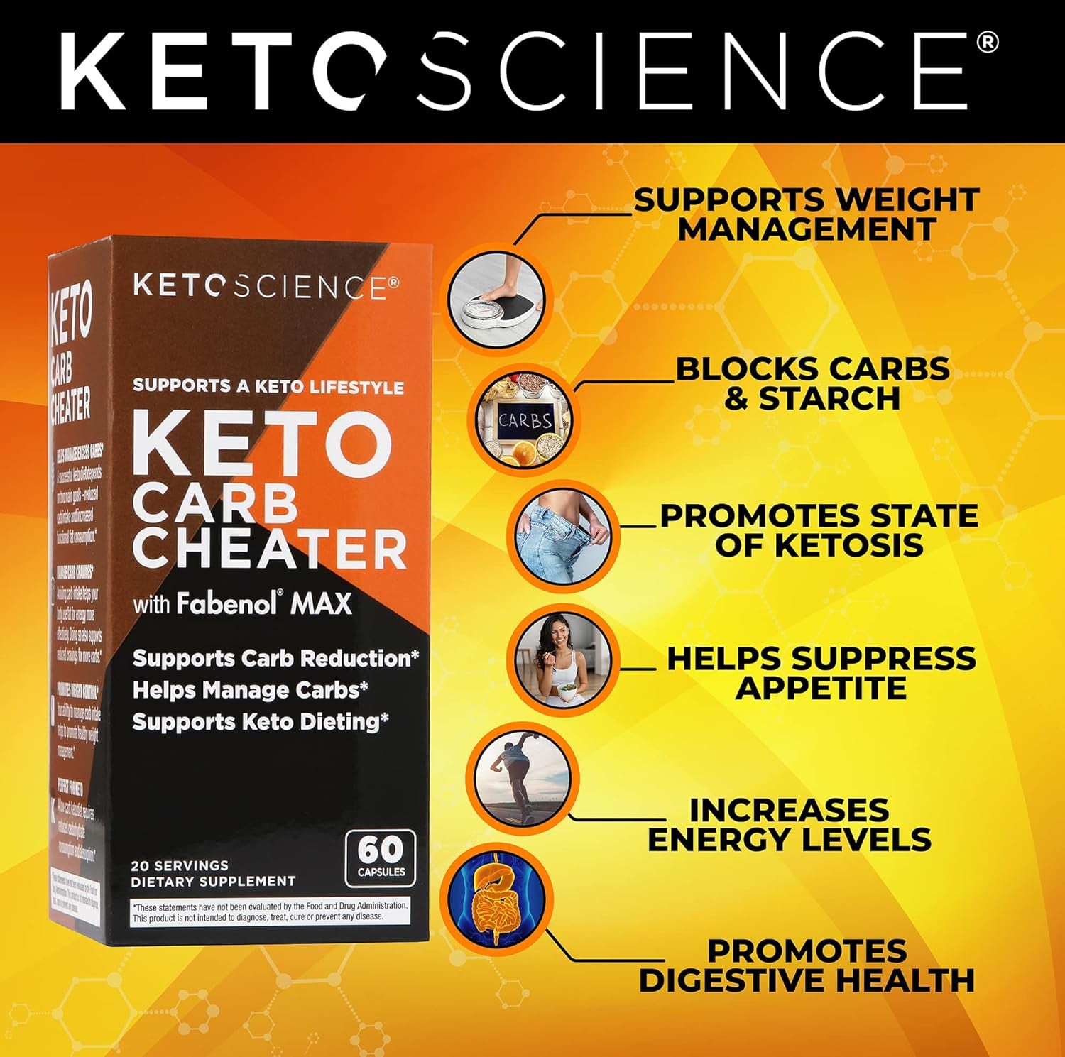 - HELPS MANAGE EXCESS CARBS. A successful keto diet depends on two main goals – reduced carb intake and increased functional fat consumption. Keto Science Keto Carb Cheater provides a clinical amount of Fabenol MAX to support your quest to reduce carb intake.