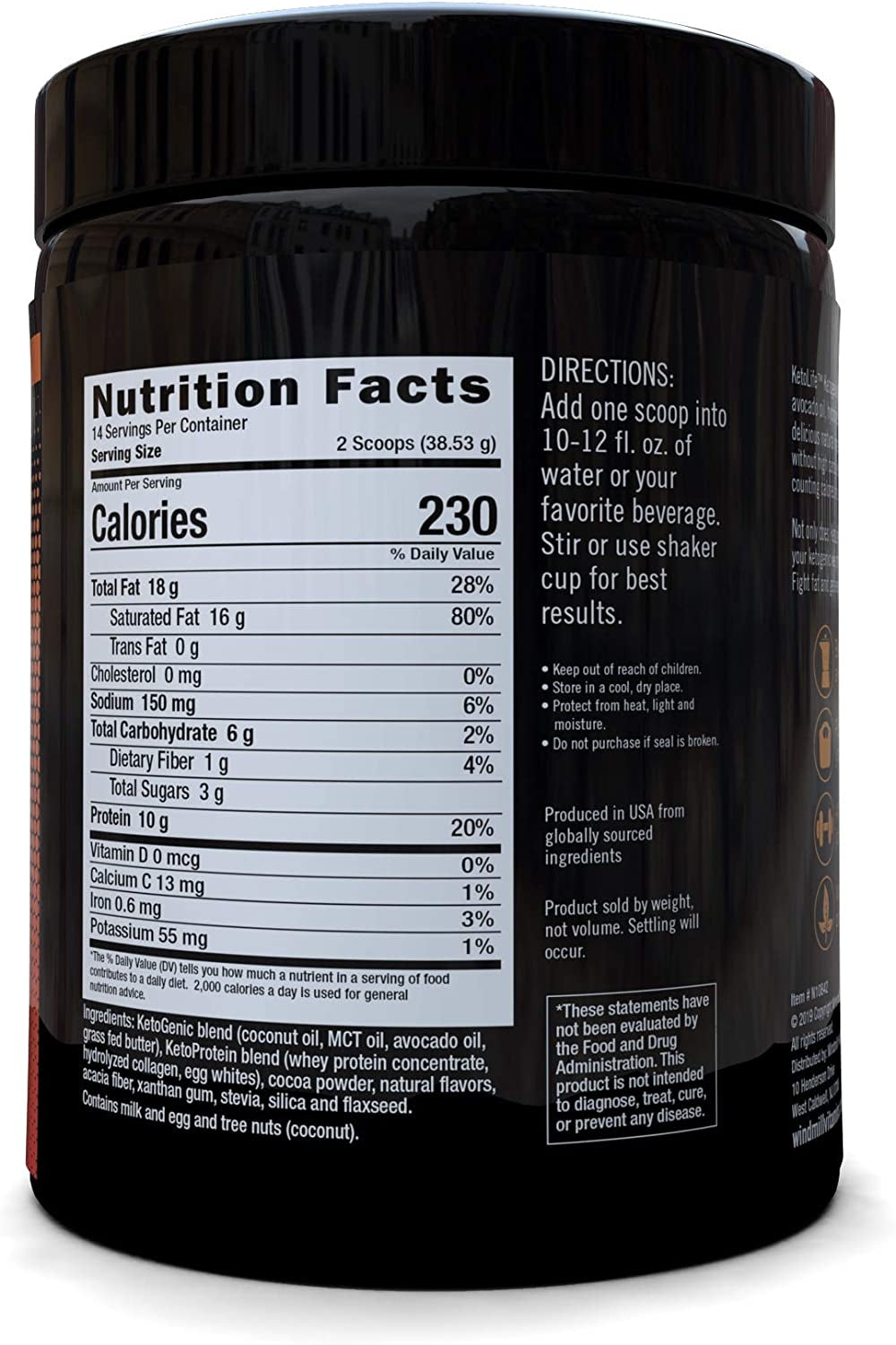 KetoLife Ketogenic Meal Shake is the ideal meal replacement shake mix to help fuel the optimal ketogenic diet. When used as part of a balanced ketogenic eating plan, this delicious shake helps support ketosis, the natural metabolic state when the body burns fat for fuel rather than carbs. As such, ketosis can help your body access stored fats and metabolize them for energy. With coconut oil, grass fed butter, avocado oil, hydrolyzed collagen, MCTs (medium chain triglycerides) and other natural ingredients, this smooth and creamy, low-carb dietary supplement serves perfectly as a meal replacement. Drink a delicious Chocolate shake in the morning for a strong breakfast or use later in the day when you need nutrition on the run. To help kick your ketogenic diet into gear and improve your overall performance, mix one scoop of this meal shake powder into 6-8 fl. oz. of water or your preferred beverage and be on your way! Each jar includes 14 total servings. KetoLife products help enhance nutritional ketosis and support a ketogenic diet by providing top quality ingredients that fit perfectly into your lifestyle.
