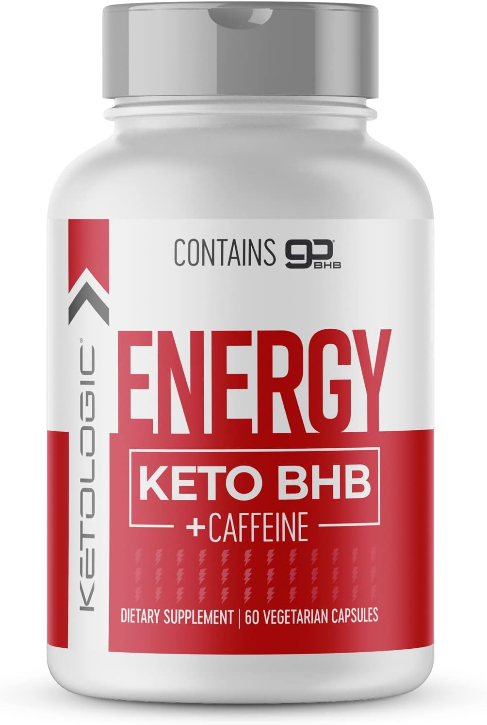 Ketologic Energy Capsules, BHB with Caffeine 60 Capsules - Gluten Free Ketone Supplement, Keto Energy Complex, 30 Servings