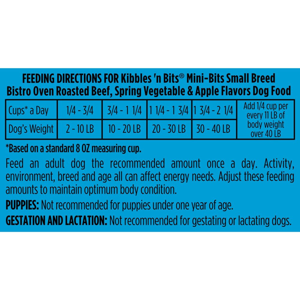 Kibbles ‘N Bits Bistro Mini Bits Small Breed Dog Food, Oven Roasted Beef, Spring Vegetable and Apple Flavors, 3.5 Lb. Bag - 3.5 Lbs is backordered and will ship as soon as it is back in stock.