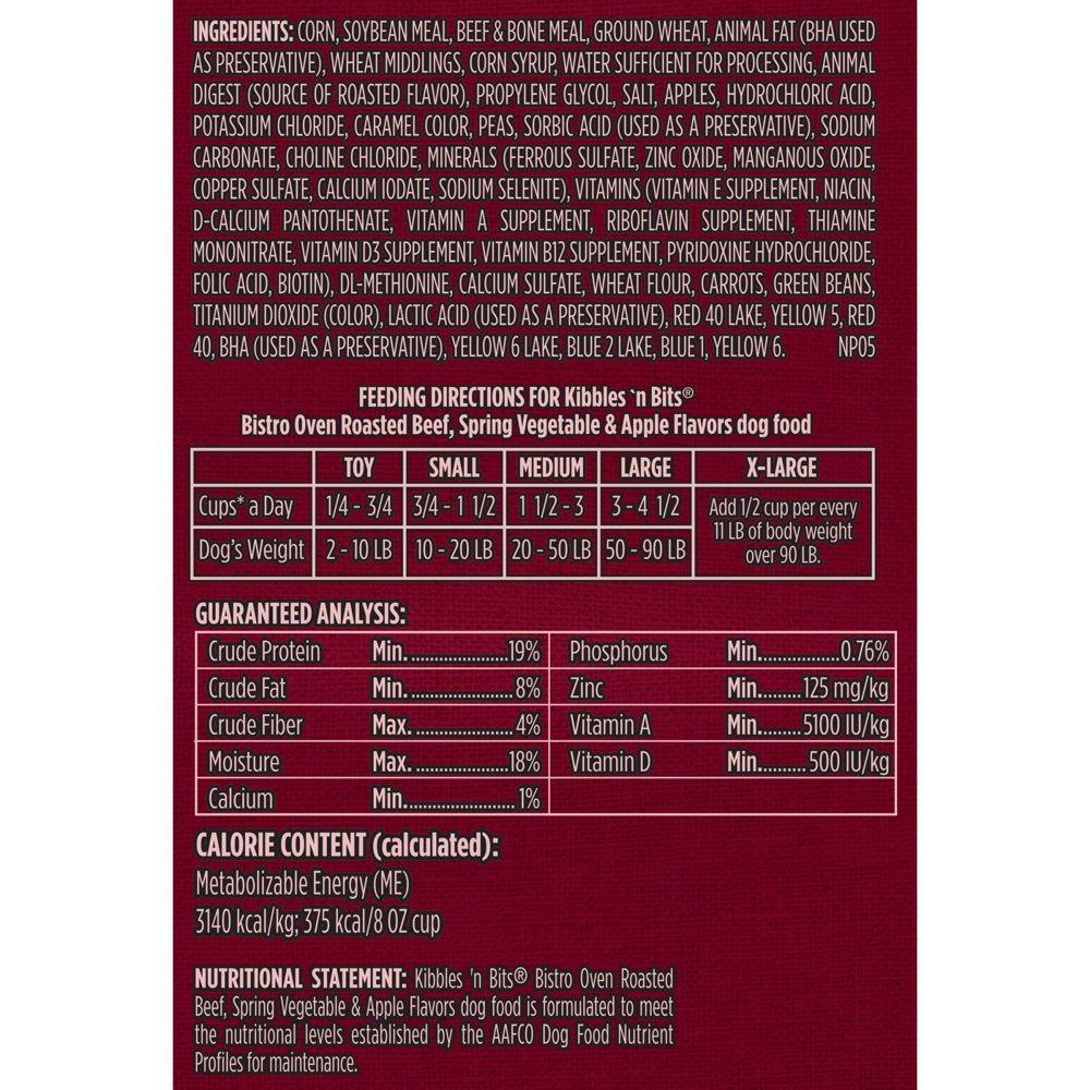 - Contains one (1) 50-pound bag of Kibbles 'N Bits Bistro Oven Roasted Beef Flavor Dry Dog Food