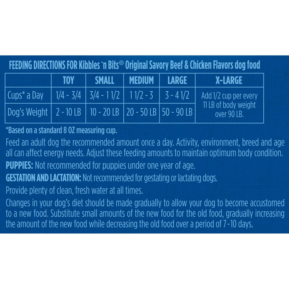 This blend of Kibbles 'n Bits Original dry dog food features the same variety of tastes and textures that gets tails wagging! This antioxidant-rich, healthy dog food contains high-quality ingredients including vegetables and 23 essential vitamins & minerals. And it has the signature mix of crunchy kibble and meaty bits, making a delicious meal with complete and balanced nutrition that you can feel good about serving every day!