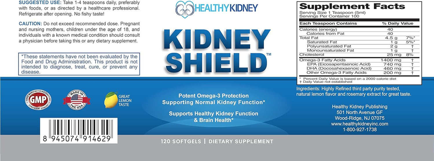- This product is the right ratio of EPA & DHA the two most potent and important omega 3 essential fatty acids for overall kidney function support and renal restoration. To equal the potency of the EPA & DHA content of Kidney Shield, you'd need to take about 6-8 pills a day of others, with ours you only need 2. Plus, this kidney supplement has no fishy taste with the essence of lemon and rosemary