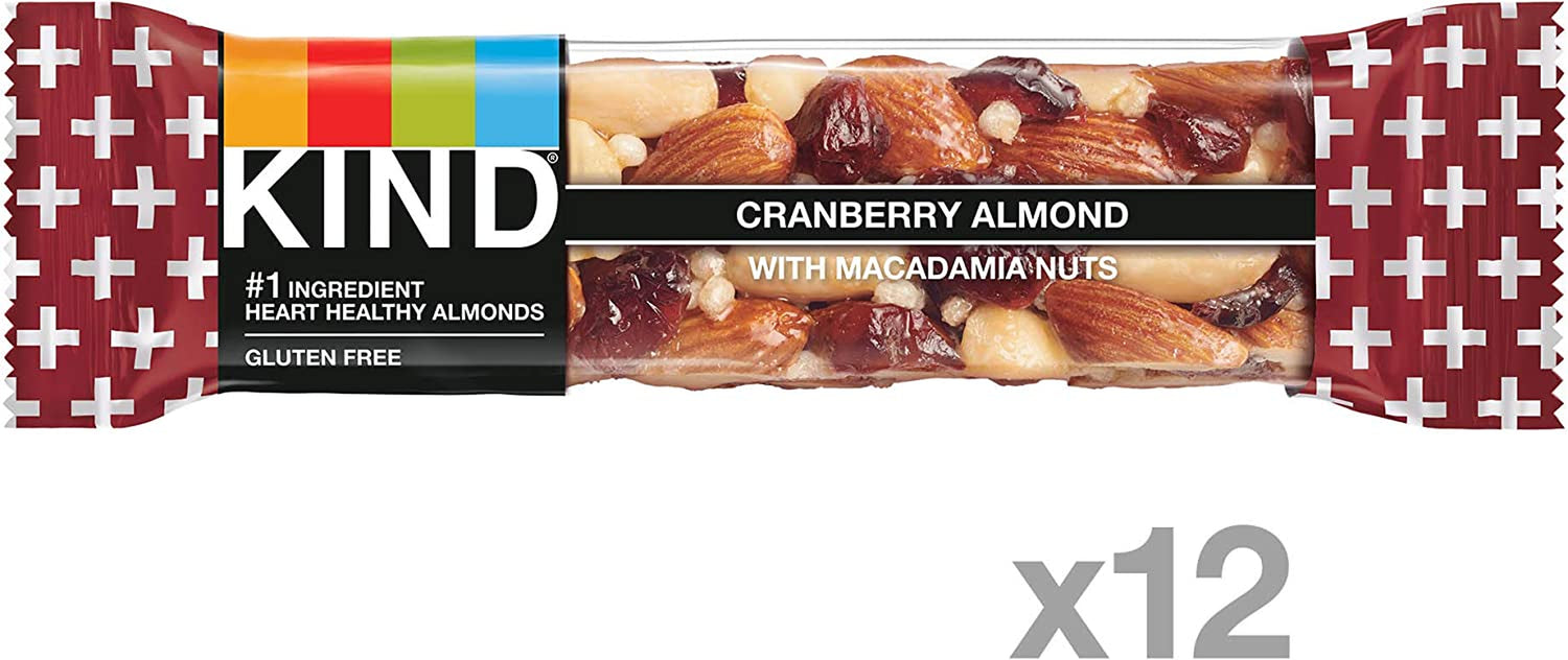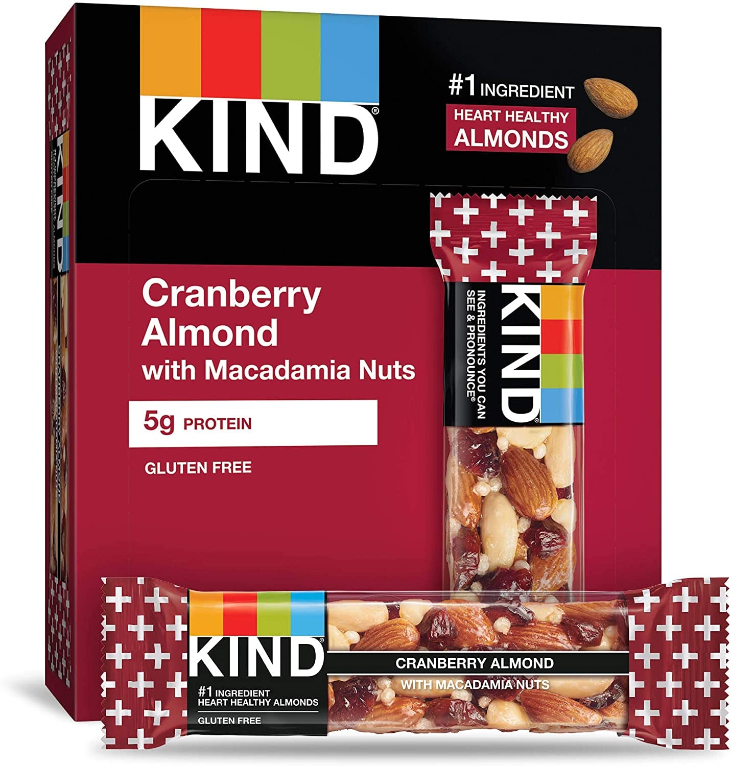 KIND Bars, Cranberry Almond with Macadamia Nuts , Gluten Free, Low Sugar, 1.4oz, 12 Count