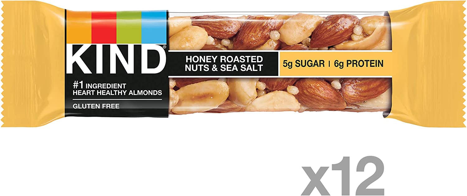 KIND Bars, Honey Roasted Nuts & Sea Salt, Gluten Free, Low Sugar, 1.4oz, 12 Count