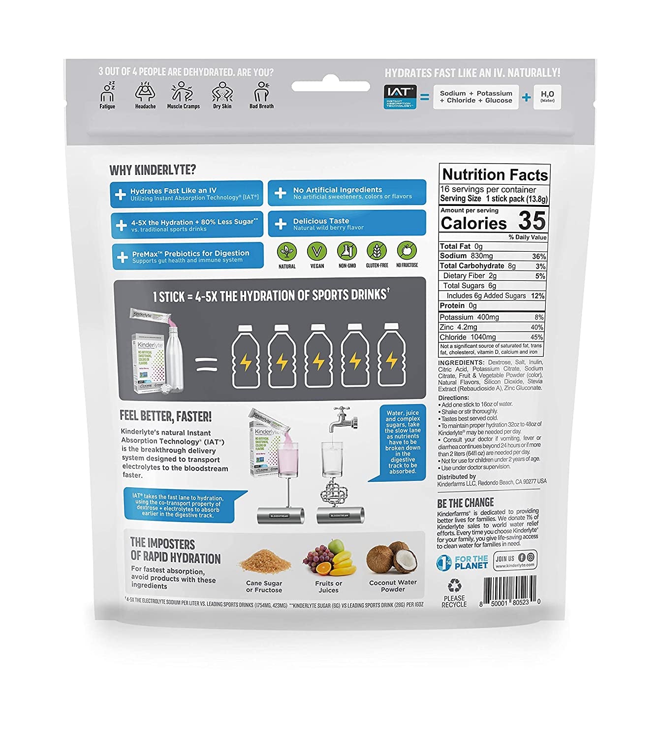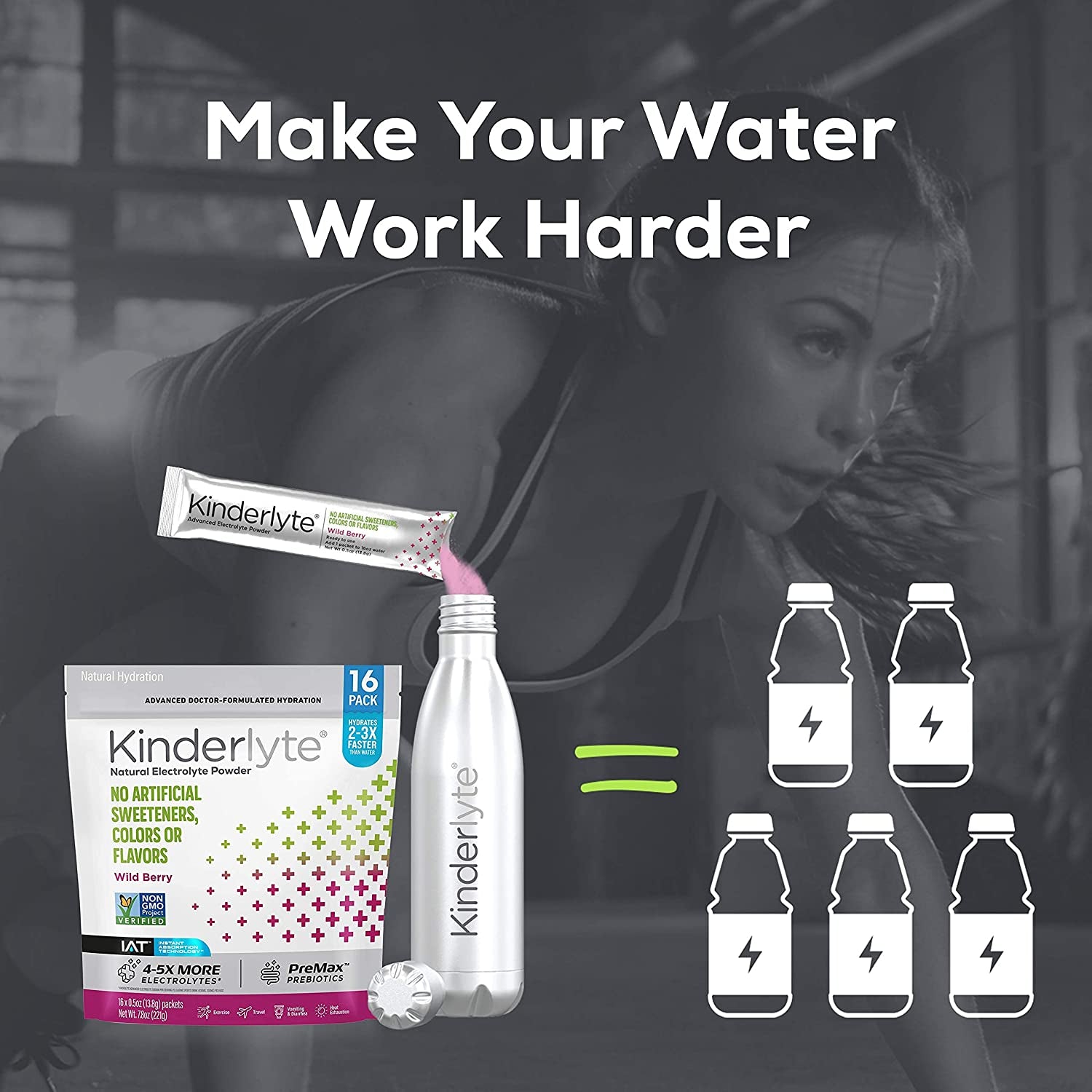 Kinderlyte Electrolyte Powder, Advanced Hydration, Easy Open Packets, Supplement Drink Mix (Wild Berry, 16 Count)