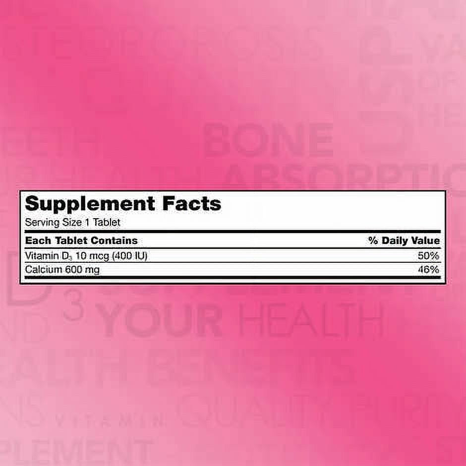 Kirkland Signature Calcium 600 mg + D3 helps supports strong bones. The addition of vitamin D helps your body to absorb calcium better.† May reduce the risk of osteoporosis.† Vitamin D helps improve calcium absorption.† Calcium supports the growth of strong bones and teeth.† Calcium is the most plentiful mineral in the body and is essential in processes such as nerve transmission, intracellular signaling, hormonal secretion, and vascular and muscle function.1 The large majority of the body’s calcium is stored in bones and teeth to help keep their structural strength and to establish reserves to conserve levels in the blood, muscles, and intracellular fluid.2 3 Recommended Daily Allowances (RDA) for calcium were established by the Institute of Medicine (IOM) based on age and gender. Men between 19-70 years old require 1,000 mg calcium daily, whereas men over 71 years need 1,200 mg per day. Women between the ages of 19-50 years old need 1,000 mg calcium per day and those over 50 years old need 1,200 mg per day.4 The Tolerable Upper Intake Level (UL) of calcium for men and women older than 18 years of age is 2,500 mg per day.4 Rich sources of calcium include dairy products, such as cheese, milk, and yogurt. Leafy greens, like kale, broccoli, and spinach also provide calcium in moderate amounts, but they contain other elements that may block calcium absorption. Oxalic acid or oxalate strongly inhibits calcium absorption and can be found in spinach and rhubarb. Foods fortified with calcium include fruit juices, tofu, and cereals. Our formulation has not changed but the label may look different now. New FDA regulations are bringing changes to the Supplement Facts panel, including updated daily values, changes to units of measure and more. To help you understand the changes we have provided both the old and new Supplement Facts panel for your comparison below. Suggested Use: Take one tablet two times daily, preferably with a meal. Ingredients:Calcium Carbonate, Cellulose Gel, Maltodextrin, Croscarmellose Sodium, Magnesium Stearate, Titanium Dioxide (artificial color), Polyethylene Glycol, Triethyl Citrate, Polysorbate 80, Corn Starch, Gelatin, Yellow 6 Lake, Vitamin D3 (Cholecalciferol). No Artificial Flavors. No Preservatives. No Yeast. No Gluten. CAUTION: If you are pregnant, nursing, or taking any medications, consult your doctor before use. Discontinue use and consult your doctor if any adverse reactions occur. Keep out of the reach of children. Store at room temperature, tightly closed. Avoid excessive heat. Vitamin Infoline 1-800-428-7782 This item is verified by the United States Pharmacopeia (USP) which is an independent, scientific, non-profit organization that sets strict quality and purity standards for dietary supplements manufactured and distributed worldwide. The USP’s drug standards are enforceable in the United States by the Food and Drug Administration. Since 1995, the Kirkland Signature brand has been providing high quality supplements at a great member value. Kirkland Signature vitamins, minerals, and supplements are made from carefully selected ingredients from trusted suppliers. The supplements are manufactured in accordance with the Good Manufacturing Practice standards. Additionally, many of the items are verified by the United States Pharmacopeia (USP) which is an independent, scientific, non-profit organization that sets strict quality and purity standards for dietary supplements