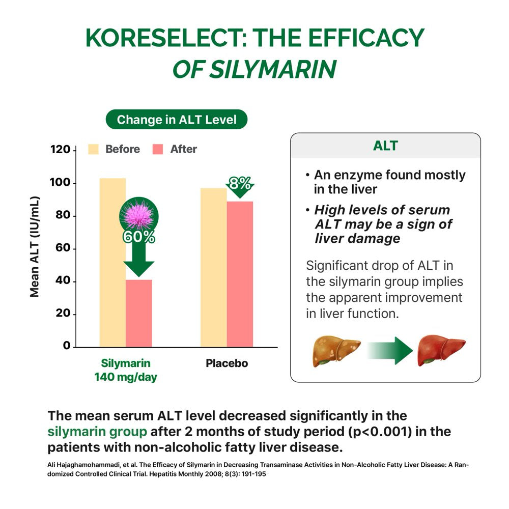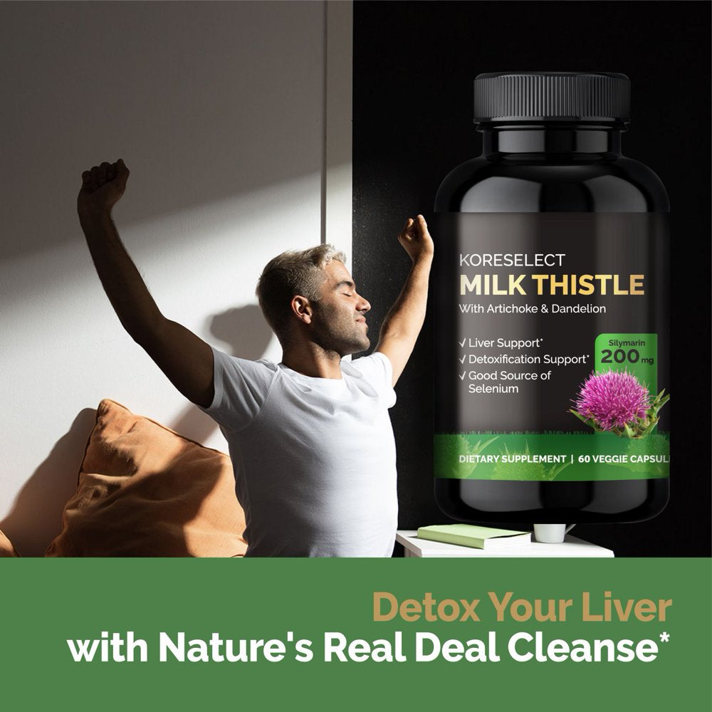- Get the maximum liver health benefits with KORESELECT Milk Thistle Extract 400mg. Liver health is important for overall health and well-being. The liver detoxifies the blood and helps the body to function properly. Our milk thistle capsules contain Silymarin 200mg, the bioactive compound that is responsible for providing powerful antioxidants and liver support.Our powerful liver health formula Milk Thistle supplement helps your liver detox and cleanse, Try it today and see the difference!