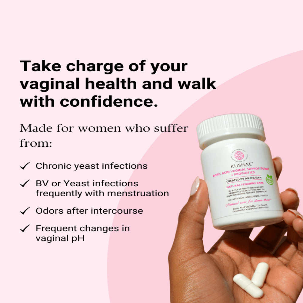 Take control of your feminine wellness with Kushae’s Boric Acid Suppositories today!