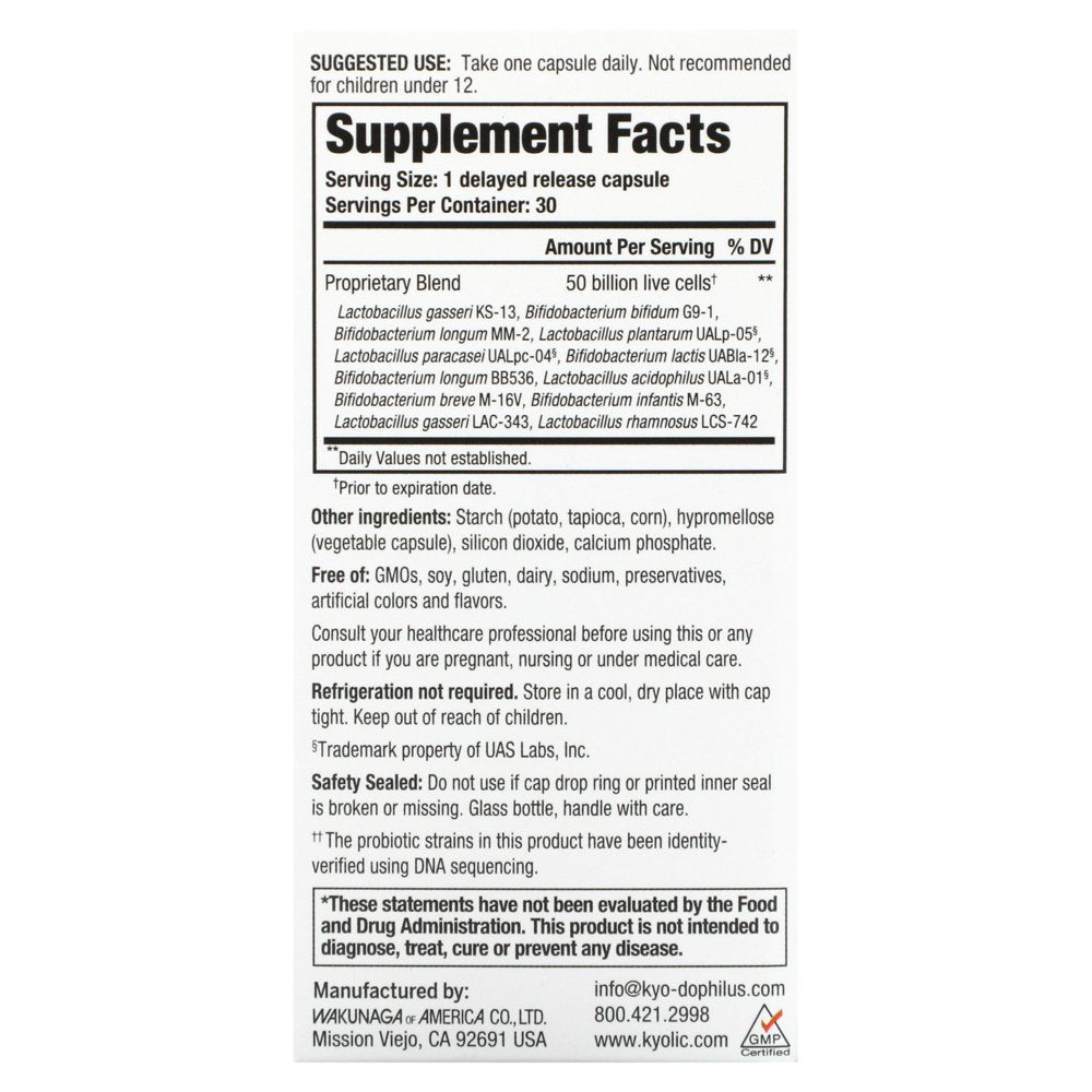 Kyolic Kyo-Dophilus, Max Probiotic, 50 Billion CFU, 30 Vegetarian Capsules