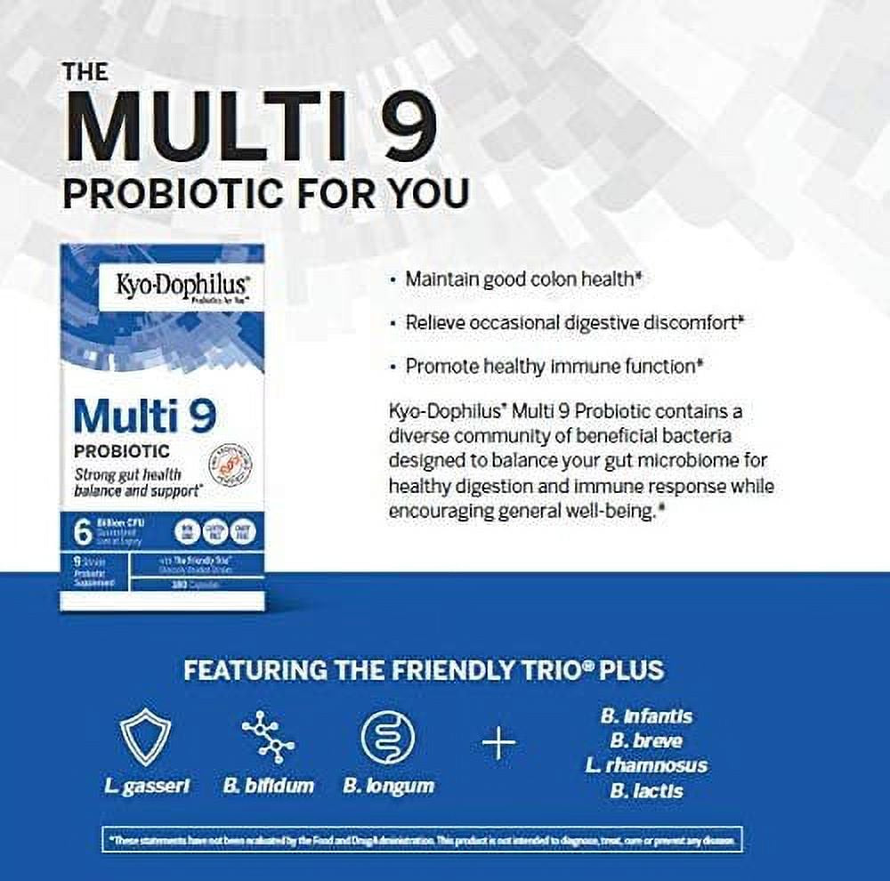 Kyolic Kyo-Dophilus Multi 9 Probiotic, for Strong Gut Health Balance and Support, 90 Capsules Total