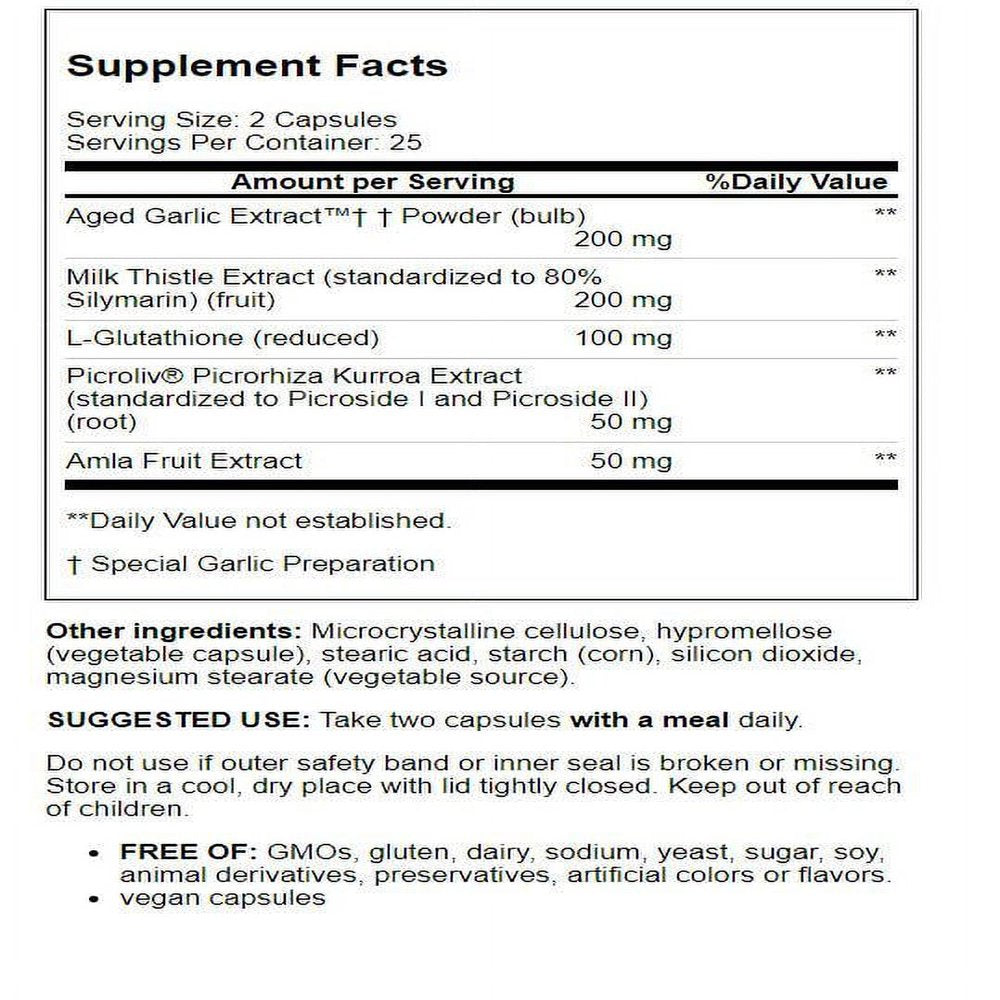 Your liver works hard to keep you healthy--show it some love with Kyolic(R) Liver Support. Liver Support combines extracts of aged garlic, milk thistle, Picrorhiza kurroa and amla fruit with master antioxidant L-glutathione for optimal support of the body's cleansing and detoxification pathways. Free of GMOs, gluten, dairy, sodium, yeast, sugar, soy, animal derivatives, preservatives, artificial colors or flavors.