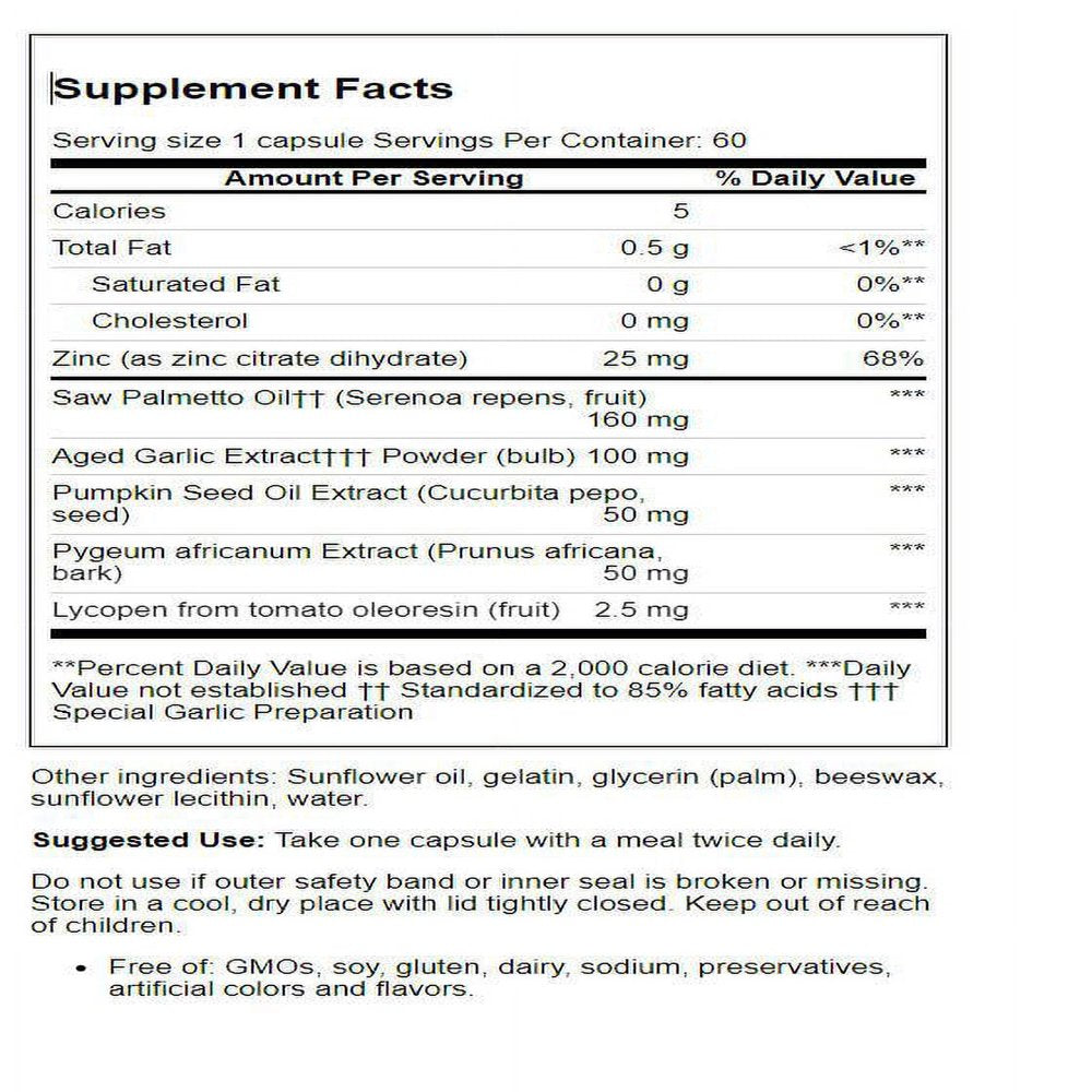 - Features herbal extracts like saw palmetto, pygeum and pumpkin seed oil