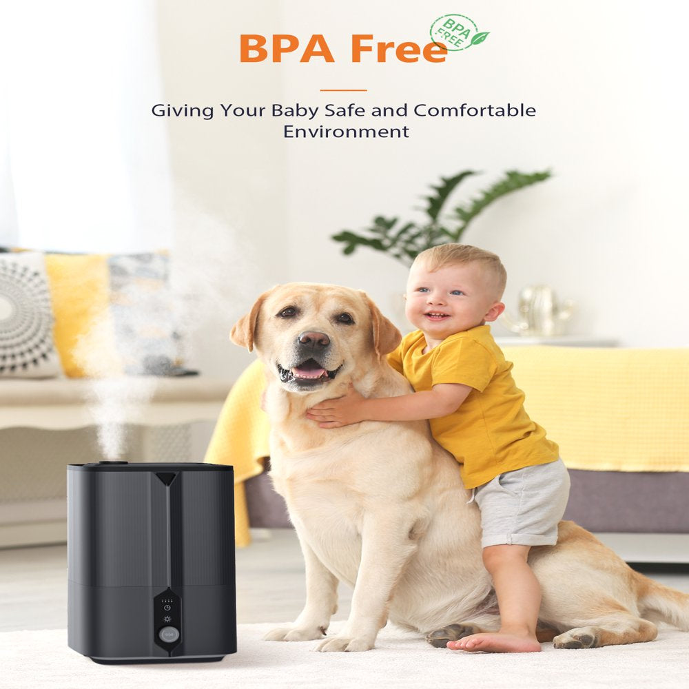 Baby Humidifier: The water tank of Kyvol Cool Mist Humidifier is made of durable and safe BPA free material, excellent choice for baby nursery and kids room. Besides, the ultra-quiet humidifier fits for baby room to ensure a sound sleep.