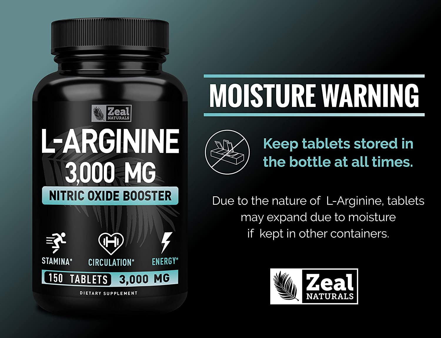 L Arginine 3000Mg Capsules (150 Tablets | 1000Mg) Maximum Dose L-Arginine Nitric Oxide Supplement for Supporting Muscle Growth, Vascular Function and Energy - Nitric Oxide Booster