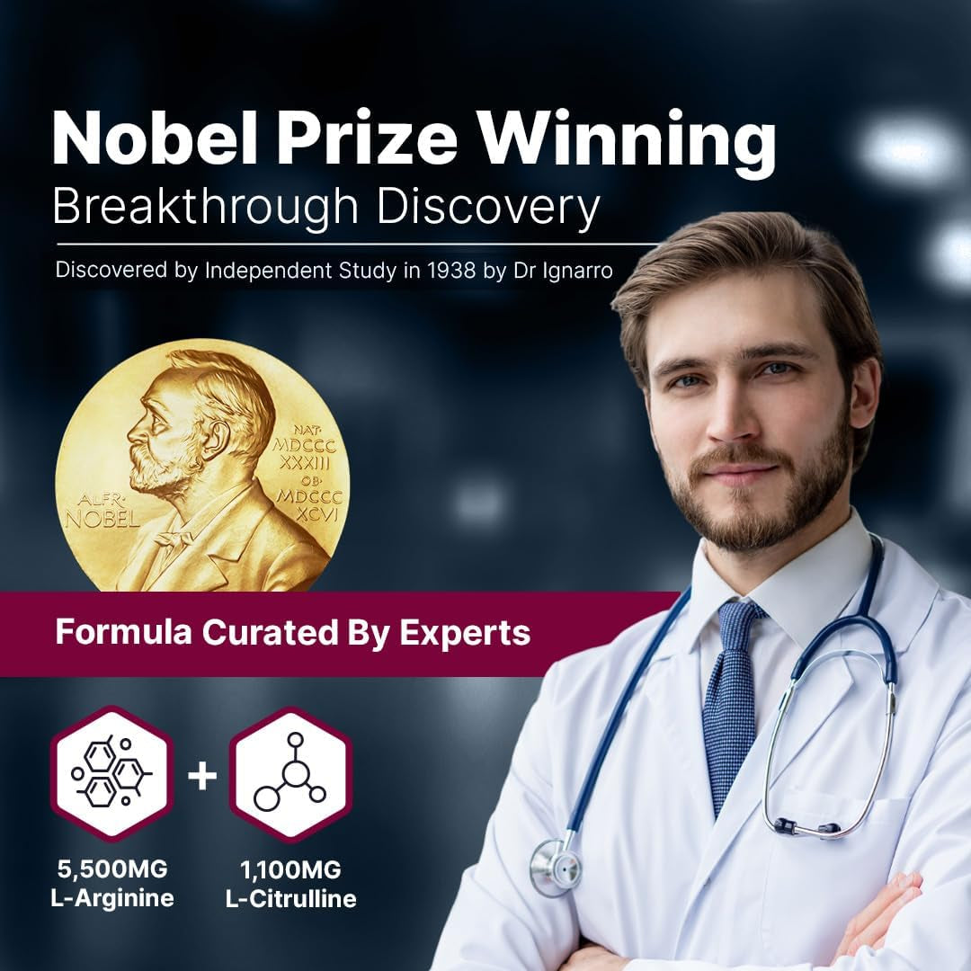 - BASED ON AN AWARD WINNING NITRIC OXIDE DISCOVERY: L-arginine Pro is formulated based on a Nobel Prize winning discovery breakthrough showing how nitric oxide supports cardiovascular health. L-Arginine Pro stands out with its high-potency blend of 5,500mg of L-Arginine and 1,100mg of L-Citrulline an effective combination that enhances nitric oxide production more than those that offer only L-Arginine.