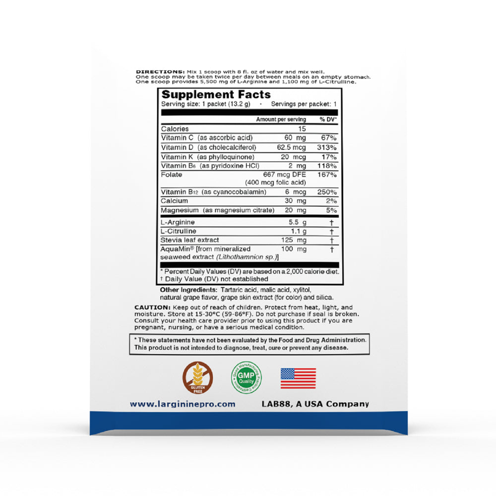 - L-Arginine Pro Powder - 5500mg L-Arginine, 1100mg L-Citrulline Cardio Health (Grapeberry, 1 Bag (30 Packets)