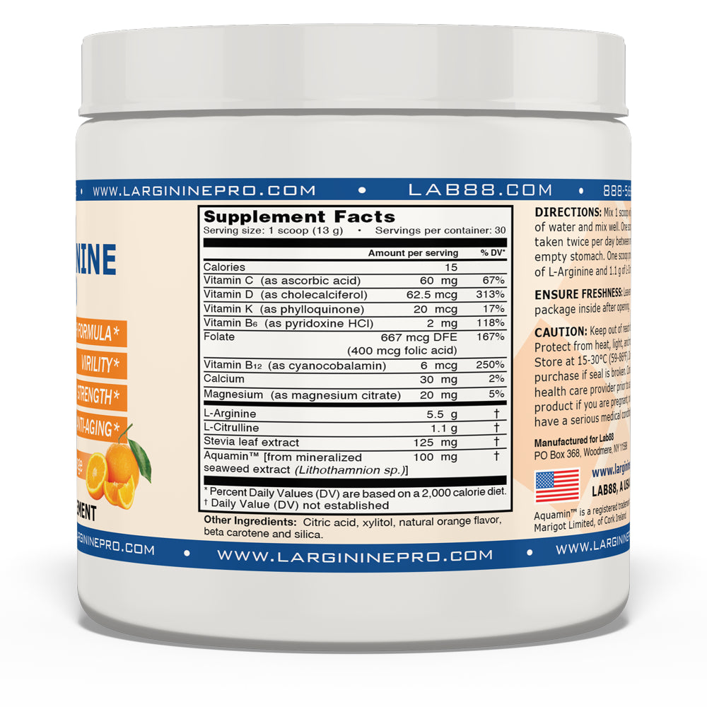 L-Arginine Pro Powder - 5500mg L-Arginine, 1100mg L-Citrulline Cardio Health (Grapeberry (1) Jar / Citrus Orange (1) Jar) L-ARGININE PRO L-ARGININE PRO POWDER SUPPLEMENT: #1 NEW IMPROVED - BEST FORMULA and BEST TASTE. L-arginine Pro is the fastest growing l-arginine powder on the market today. Use L-arginine Pro to support: Cardio & Fitness Health, Increase Energy, Strength & Muscle Tone, Boost Athletic Performance, Increase the benefits of Anti-Aging & Immune Function. L-arginine Pro is an Amino Acid and Nitric Oxide formula designed to support heart health: cardio fitness, pre-workout, performance, and energy. This leading l-arginine powder is designed based on research of a Nobel Prize winning breakthrough discovery of nitric oxide. Available in both Jars and On-the-Go single Serve Packets. L-ARGININE PRO POWDER SUPPLEMENT: #1 NEW IMPROVED - BEST FORMULA and BEST TASTE. L-arginine Pro is the fastest growing l-arginine powder on the market today. Use L-arginine Pro to support: Cardio & Fitness Health, Increase Energy, Strength & Muscle Tone, Boost Athletic Performance, Increase the benefits of Anti-Aging & Immune Function. L-arginine Pro is an Amino Acid and Nitric Oxide formula designed to support heart health: cardio fitness, pre-workout, performance, and energy. This leading l-arginine powder is designed based on research of a Nobel Prize winning breakthrough discovery of nitric oxide.