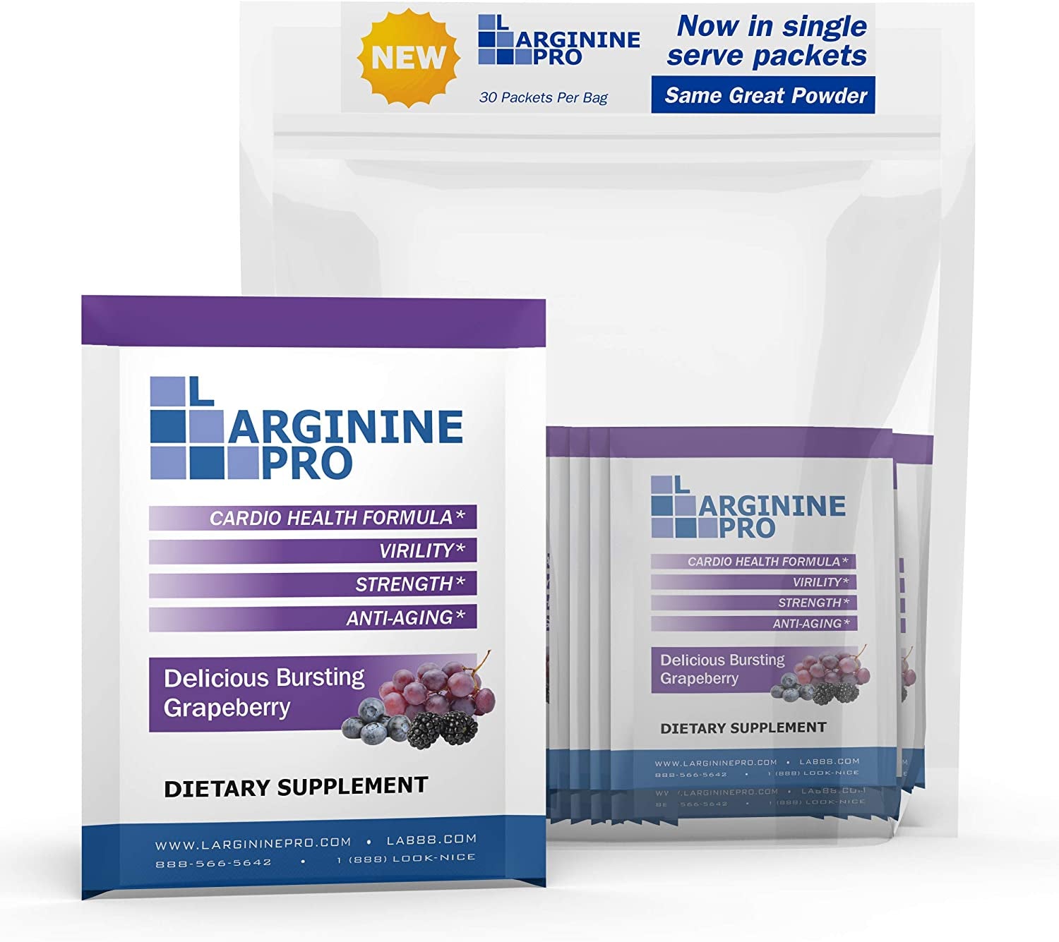 L-ARGININE PRO Supplement On-The-Go Single Serve Travel Packets - 5,500Mg of L-Arginine plus 1,100Mg L-Citrulline (Grape Berry, 30 Packets)