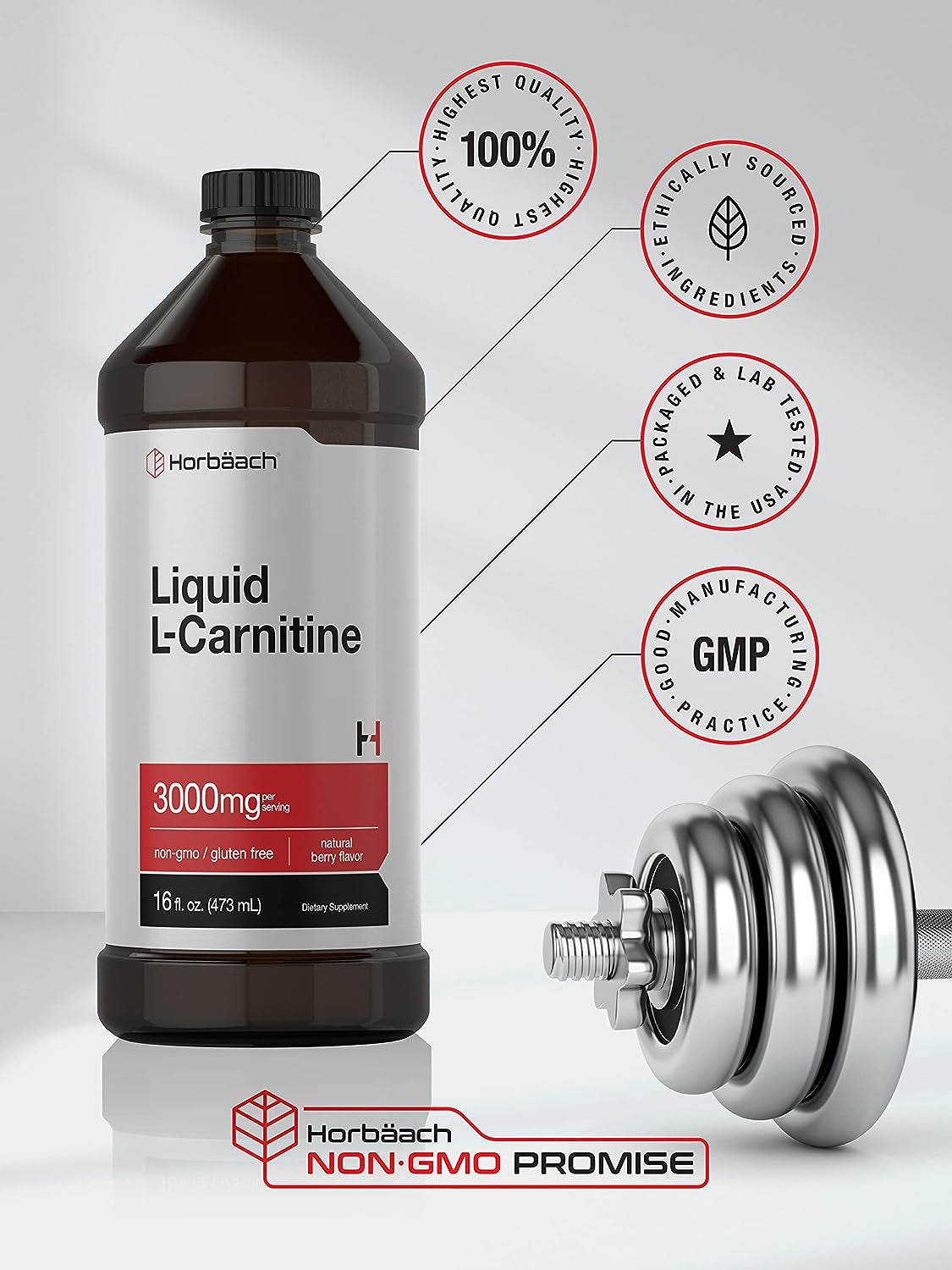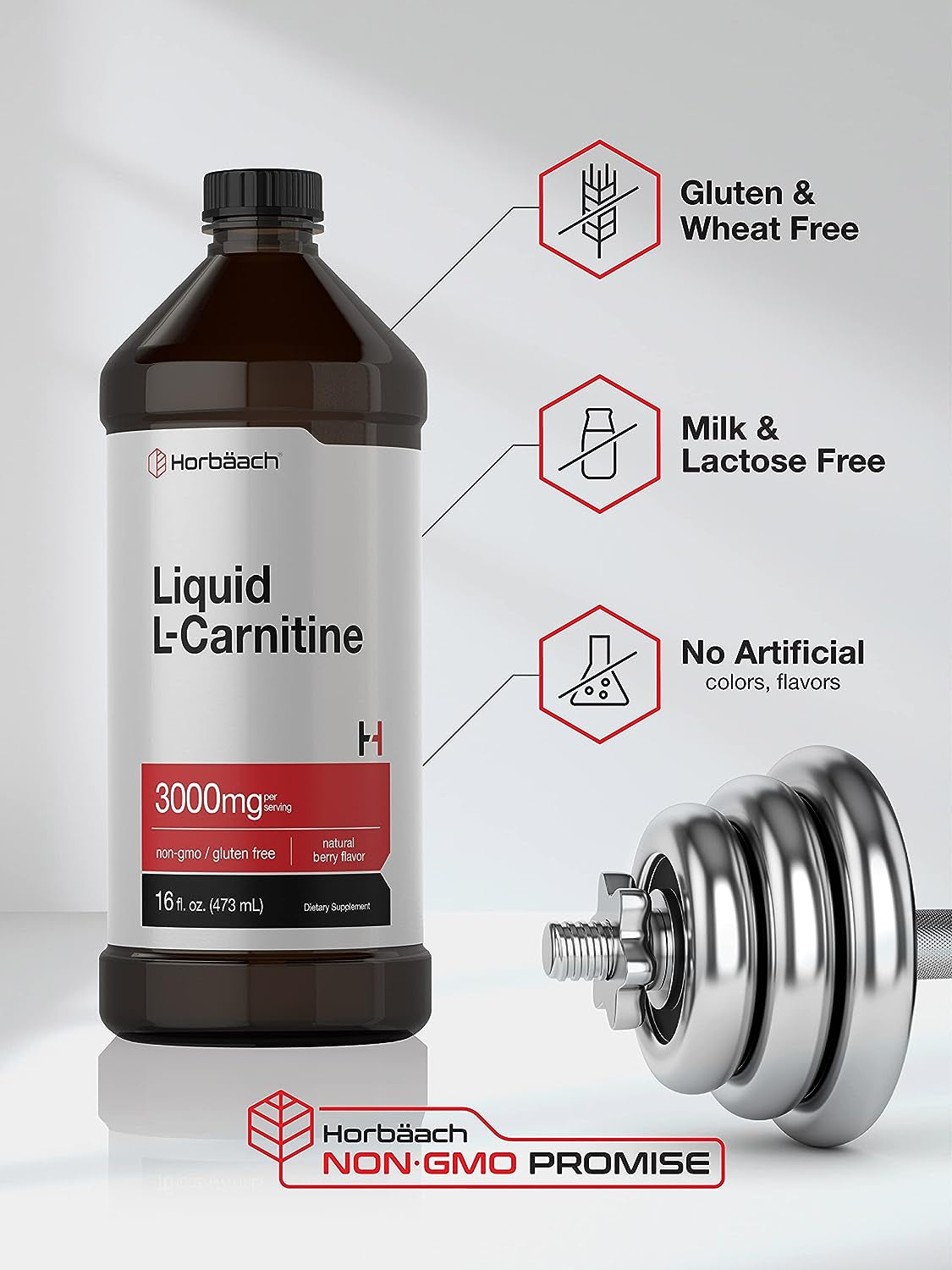 L-Carnitine Liquid 16 Oz | 3000 Mg | Natural Berry Flavor | Vegetarian Formula | Non-Gmo, Gluten Free Supplement | by Horbaach