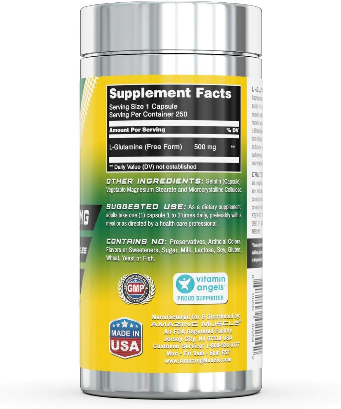 Amazing Muscle L-Glutamine 500 Mg 250 Capsules California Proposition 65 WARNING:- âConsuming this product can expose you to chemicals including lead which is known to the State of California to cause birth defects or other reproductive harm. For more information go to www.P65Warnings.ca.gov/food." Â