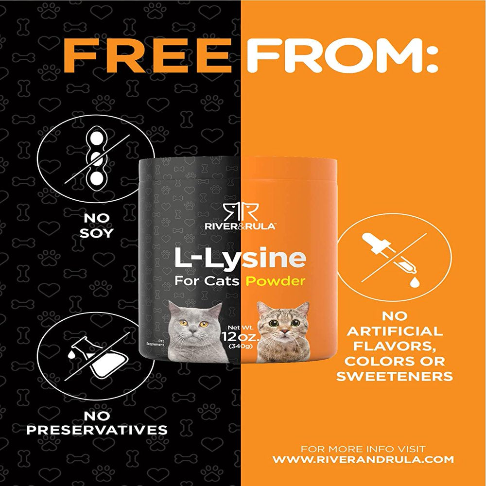 L-Lysine Powder for Cats 500Mg | 12Oz | Cat Health Supplement | Non-Gmo, Vegetarian Formula | by River & Rula