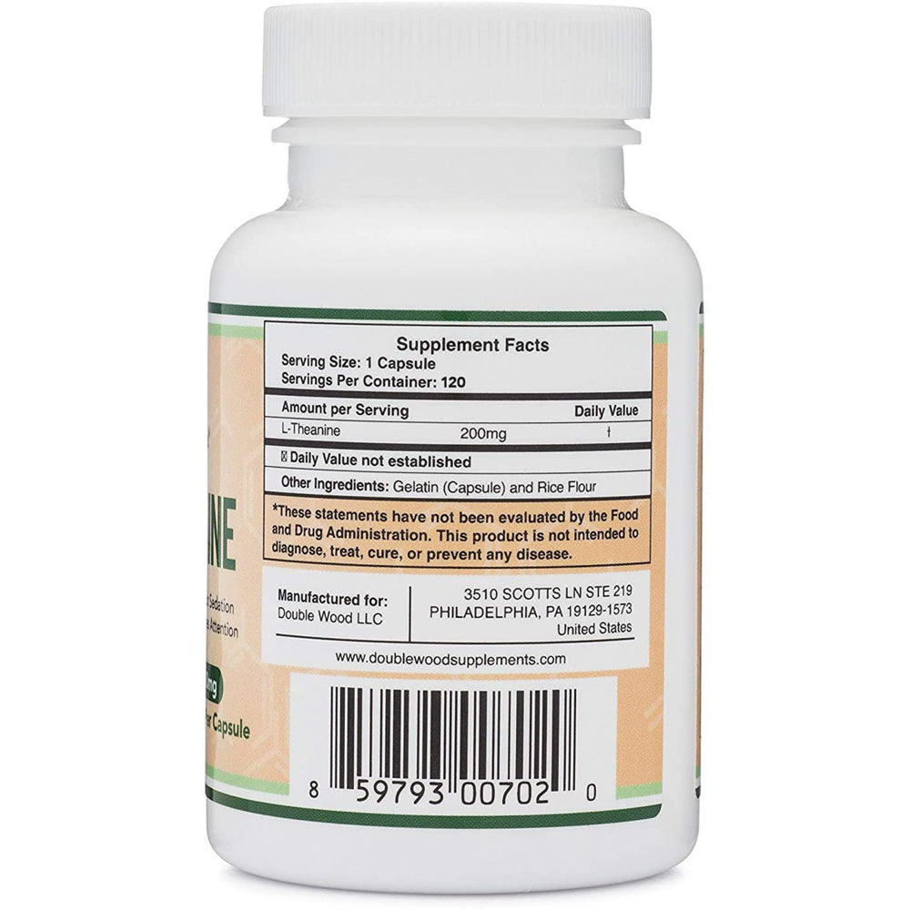 L-Theanine 200Mg Capsules (Third Party Tested), 60 Capsules by Double Wood Supplements