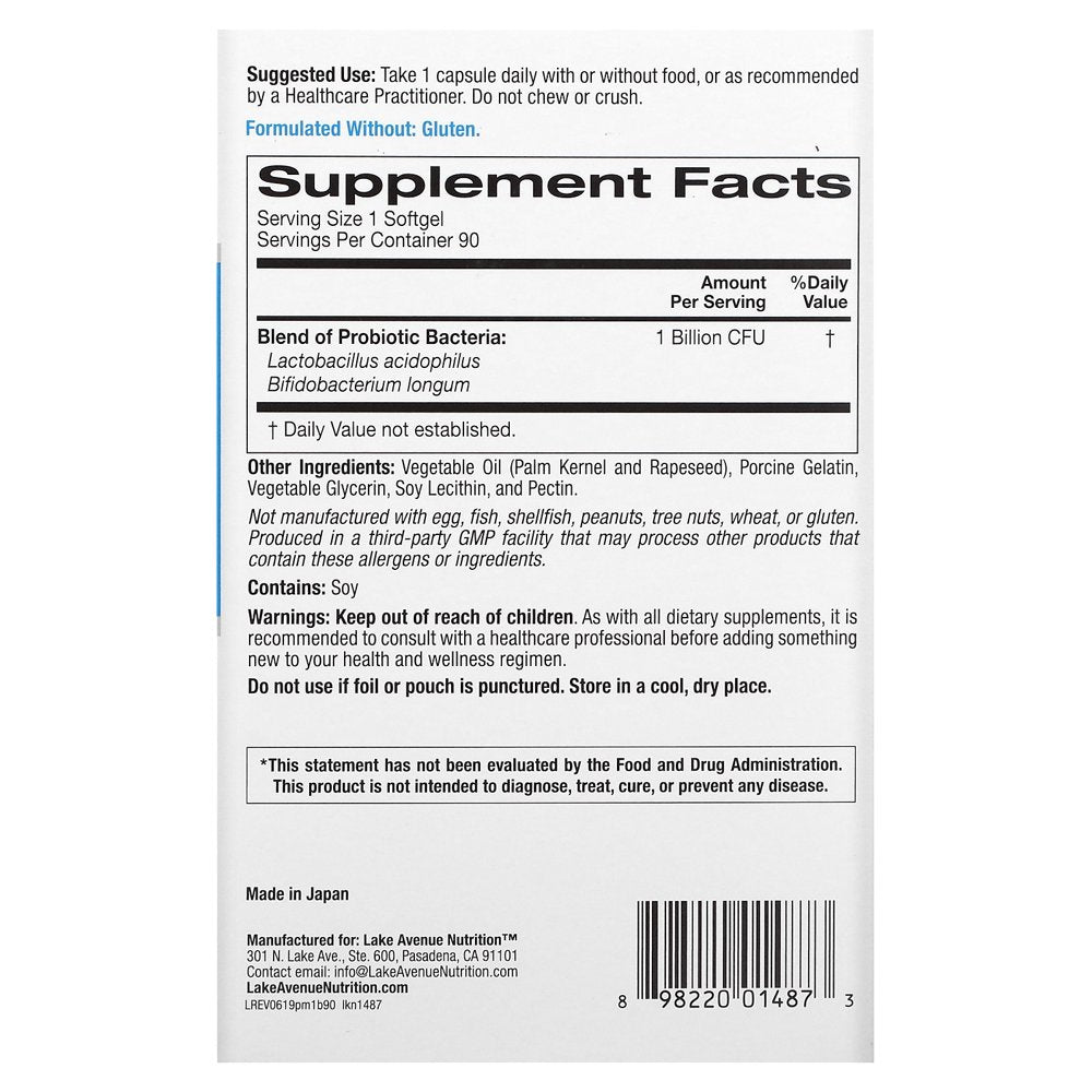 Lake Avenue Nutrition, Probiotic Minis, 2 Strain Blend, 1 Billion CFU, 90 Softgels