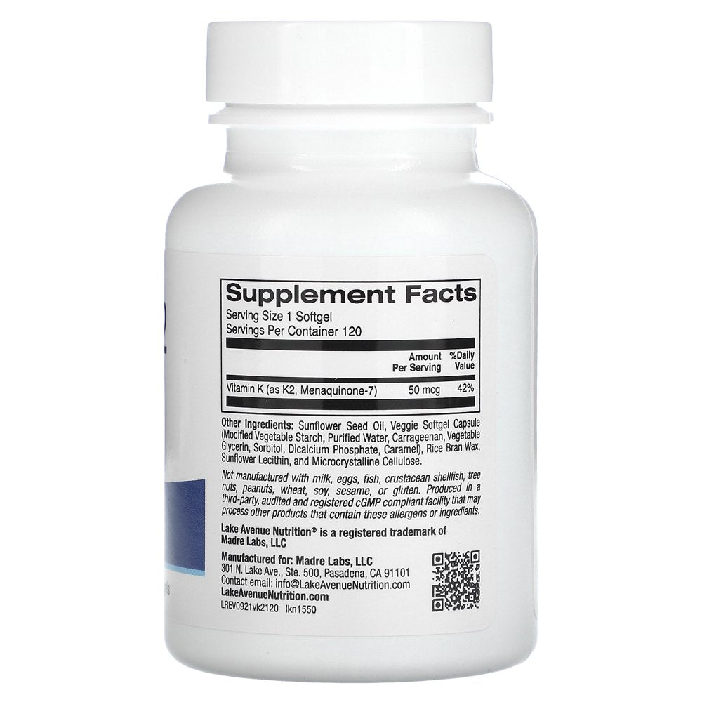 Lake Avenue Nutrition, Vitamin K2 (As Menaquinone-7), 50 Mcg, 120 Veggie Softgels