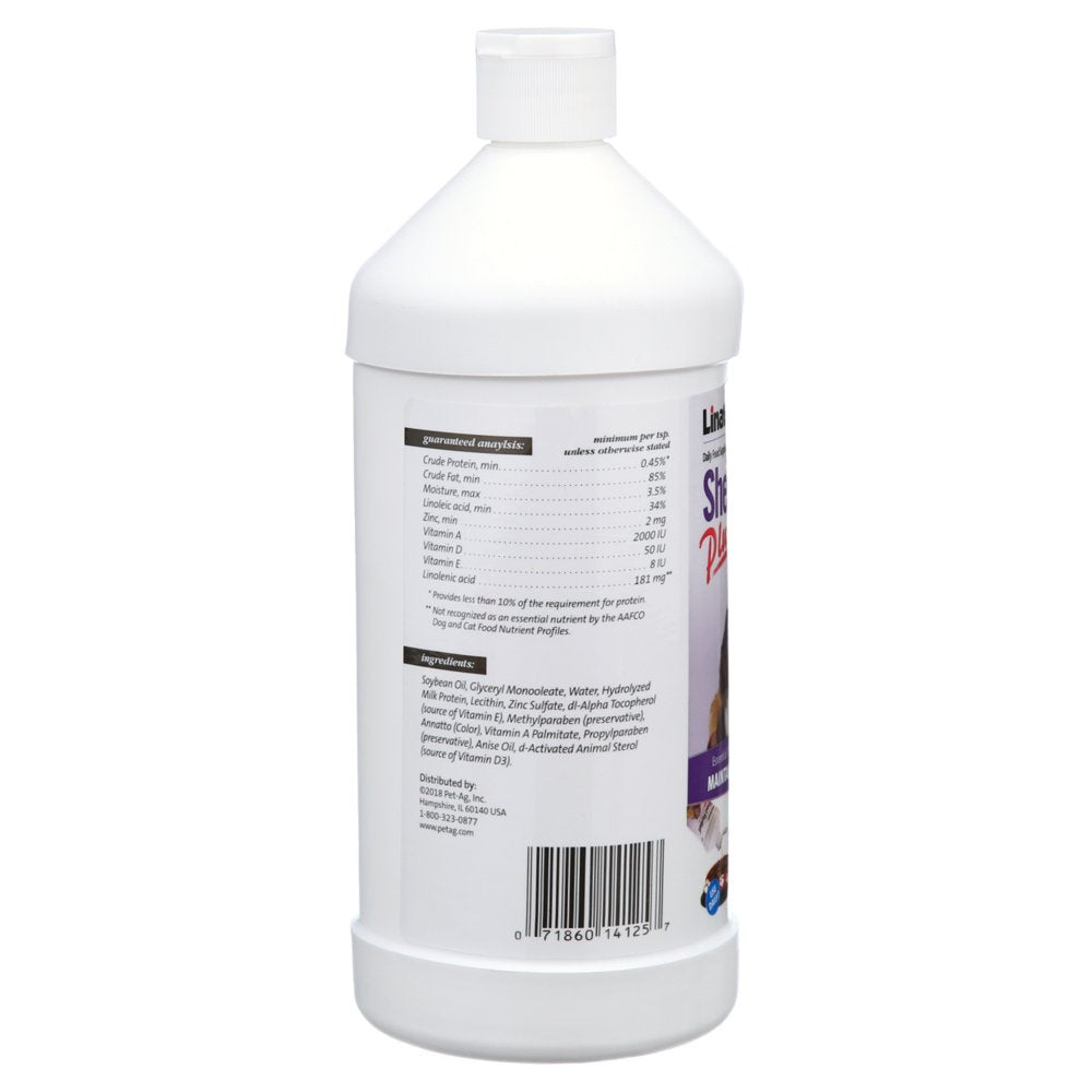 - Linatone Shed Relief Plus Dog and Cat Skin and Coat Liquid, 32 Ounces helps reduce excess shedding by providing essential fatty acids, protein, zinc and nutrients that are potentially lacking in the diet. This daily skin and coat for dogs and cats is made with Omega 3 and 6 fatty acids, protein and zinc that are essential for a healthy, shiny coat and hair and to reduce excessive shedding. Mix with food or feed directly daily. If dog or cat is fed twice a day, divide the serving between feedings and mix with food. Give adult dogs 1 teaspoon per 20 pounds of body weight. Give puppies 1 teaspoon per 10 pounds of body weight. Give pregnant or nursing females 1 teaspoon per 10 pounds of body weight. Give cats and kittens 1/4 teaspoon per 2 pounds of body weight. Double daily serving for first 5 days if skin is very dry.