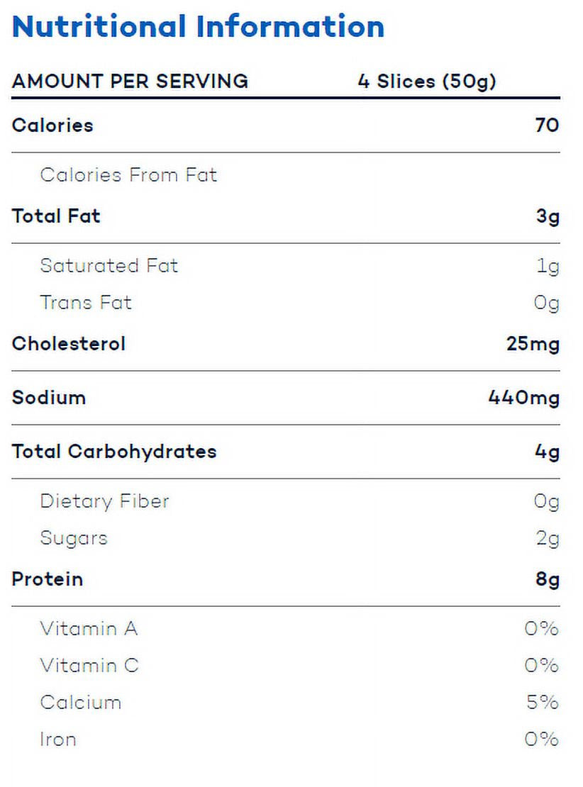 Our honey smoked turkey breast is lightly sweetened with honey so your whole family will enjoy this wholesome, simple turkey sandwich for your child's lunch to a meat lover's deli stack for hungry appetites to a gourmet creation for the foodie in your family ? the delicious possibilities are endless! Our premium products offer a wide selection of flavors and the quality your family expects. We deliver wholesome quality products with no artificial flavors, no by-products, and no added hormones. Because we care about the health of your family. If you have any left over, the resealable, value-sized plastic pouch container will keep it moist and flavorful. 4 delicious slices will give you 8g of protein. Certified Gluten Free.