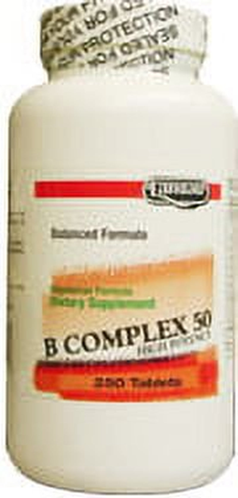 Nutrition Facts: Thiamin (as thiamin HCI vitamin B1) 50 mg 3333%'Riboflavin (vitamin B2) 50 mg 2941%'Niacin (as niacinamide) 50 mg 250%'Vitamin B6 (as pyridoxine HCI) 50 mg 2500%'Folic Acid 400 mcg 100%'Vitamin B12 (as cyanocoblamin) 50 mcg 833%'Biotin 50 mcg 17%'Pantothenic Acid 50 mg 500%'Choline (as choline bitarate) 50 mg *'Inositol 50 mg *'PABA (as para-aminobenzic acid) 50 mg *