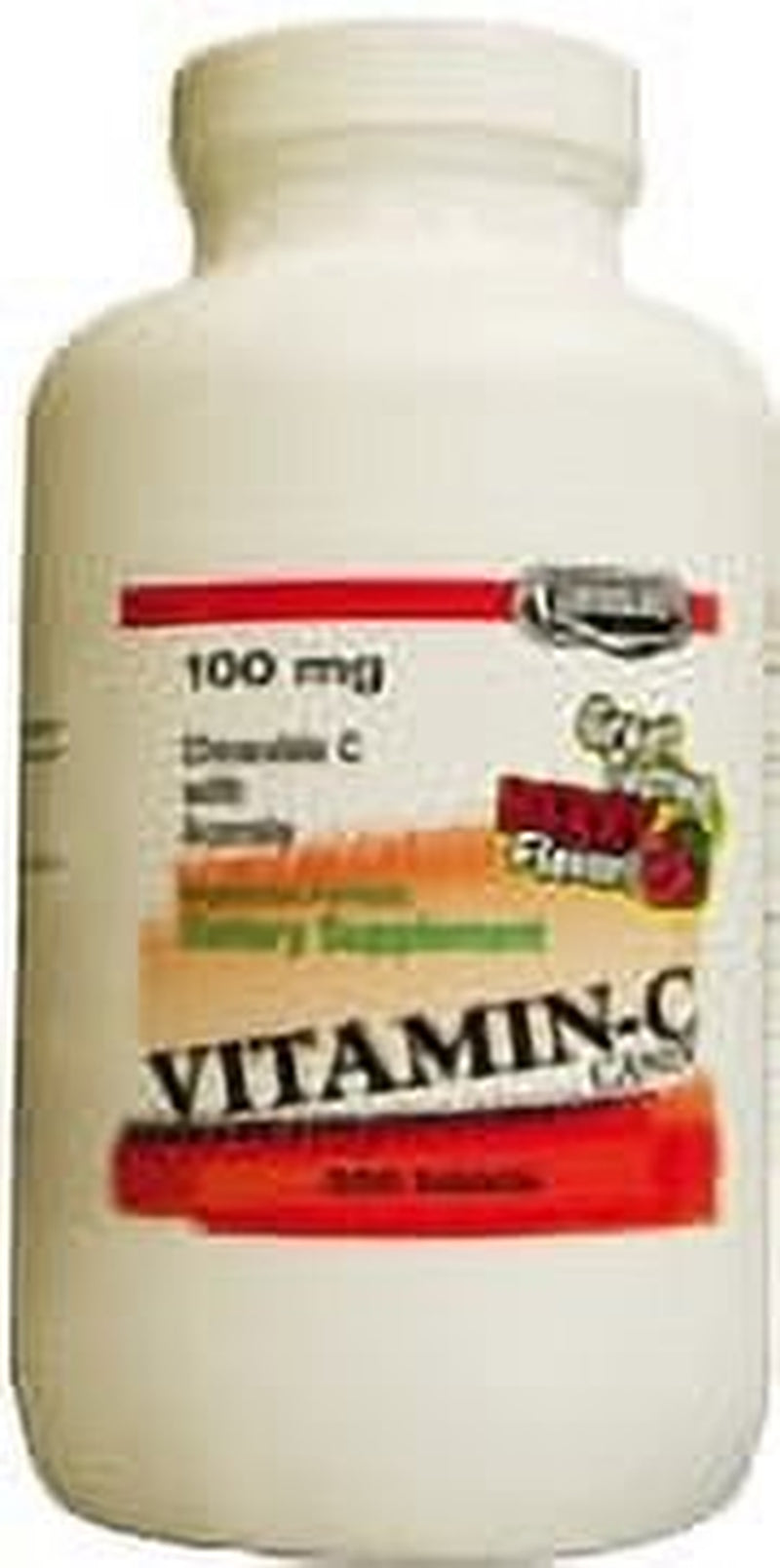 Ingredients: Sucrose, Citrus Bioflavanoids, Rose Hips, Vegetable Stearic Acid, Natural and artificial Rasberry Flavor, Acerola, Silica.