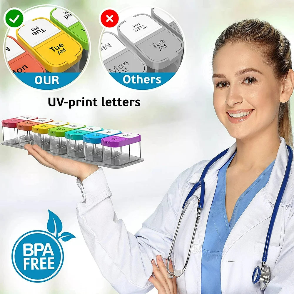 - UV-Printed Indelible Letters - our pill organizers boxes have UV-printed indelible letters, which makes our xl vitamin container durable.