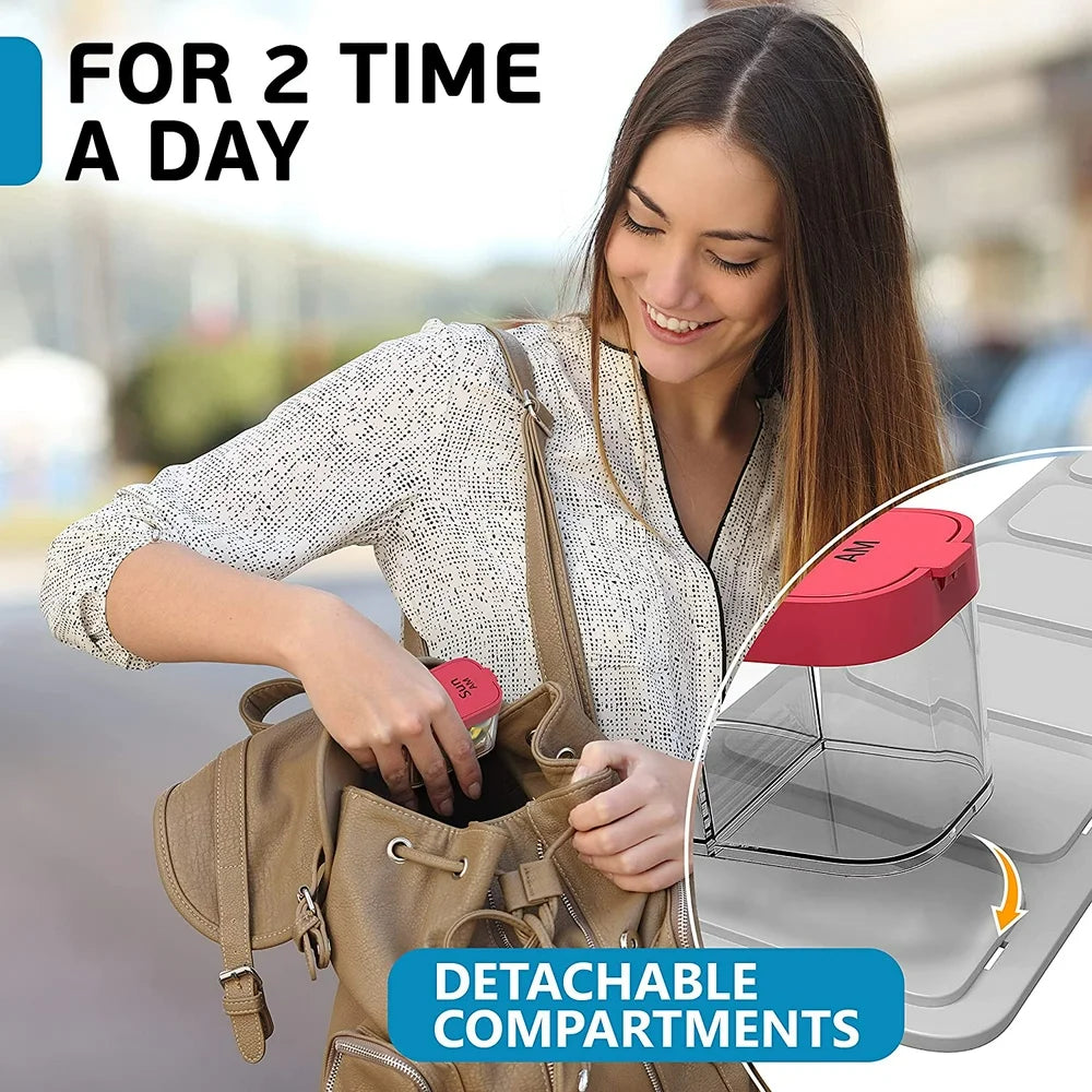 - Detachable Compartments - the compartments of our pill holder are tightly fixed on the pill organizer’s stand, but you can reattach them and take only 1 travel pill box medicine organizer with you.