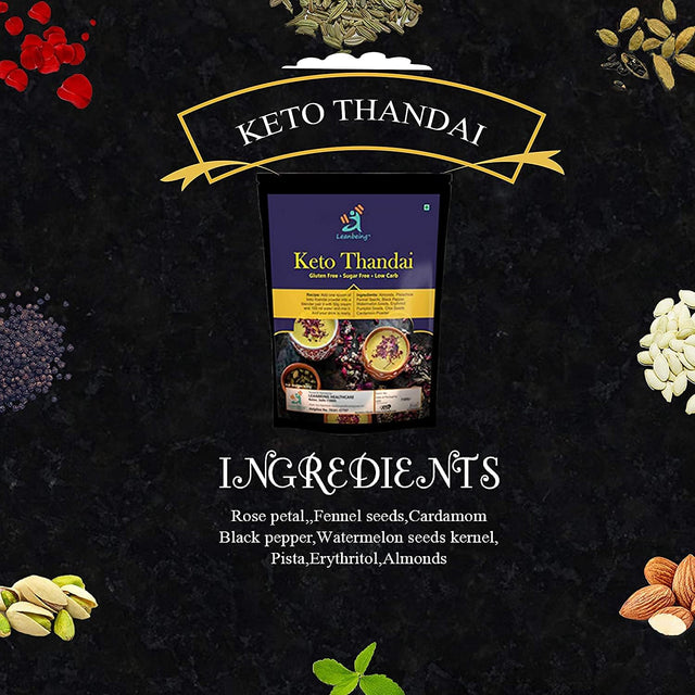 Leanbeing Keto Rose Thandai Premix 200Gm |Sugar-Free, Organic, Gluten-Free, Low Carb, Ultra-Low Gi, Vegan, Diabetes