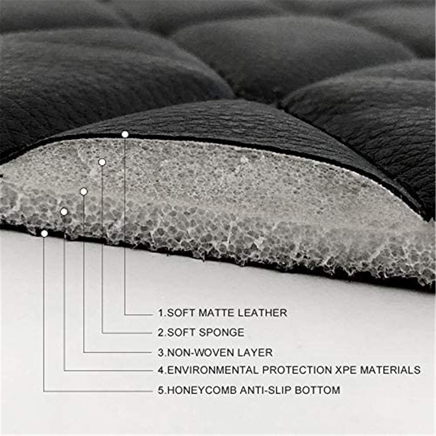 - The surface layer is PVC material, with wear-resistant, waterproof, non-slip, dirt-resistant and easy to clean. The middle layer is EVA material, which can keep our foot pad vertical for a long time, not easy to deform. Bottom layer It is a non-slip cloth that prevents the mat from rolling inside the car. The three materials complement each other and work together to bring you the best quality experience.