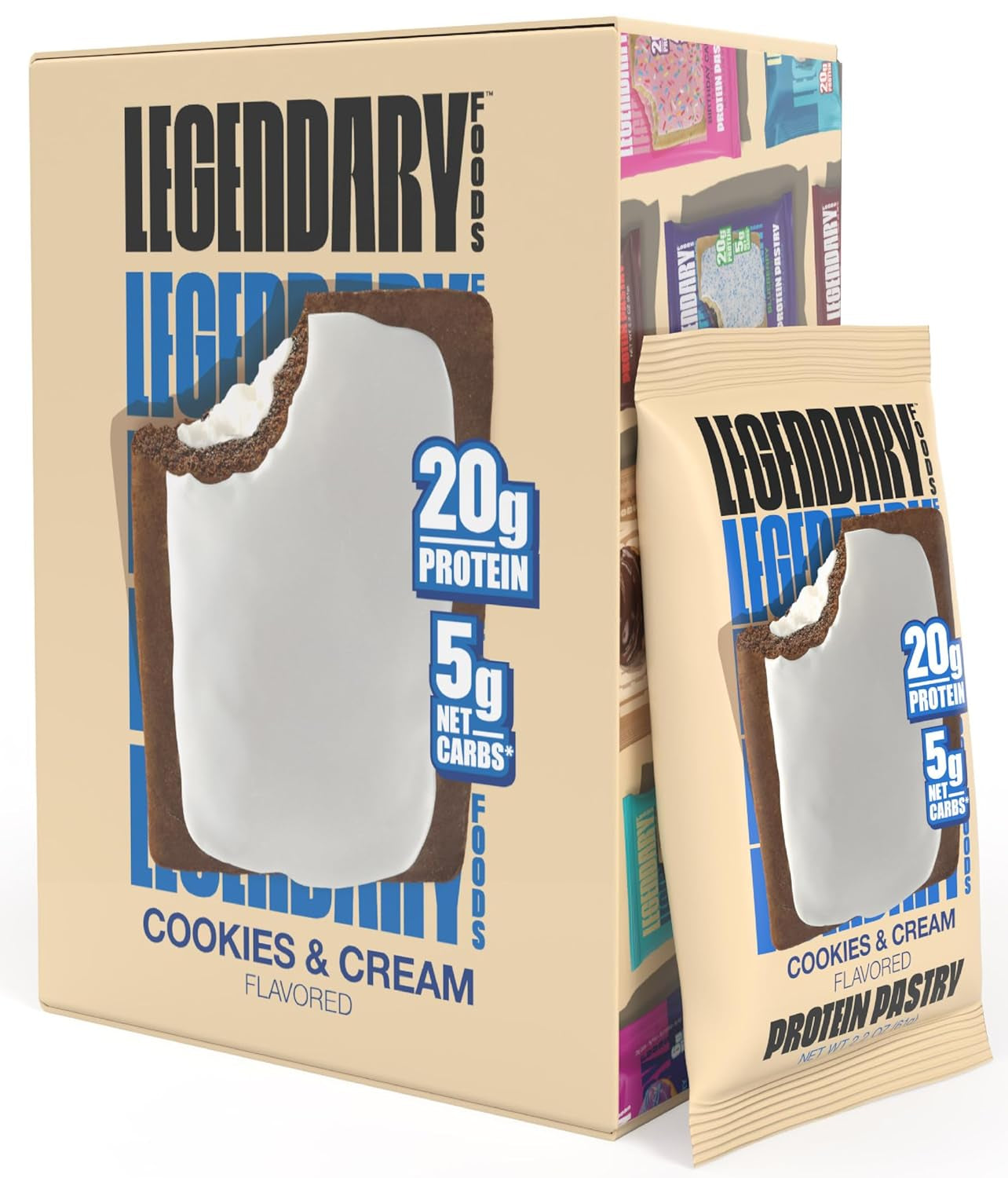 Legendary Foods 20 Gr Protein Pastry | Low Carb, Tasty Protein Bar Alternative | Keto Friendly | No Sugar Added | High Protein Breakfast Snacks | Gluten Free Keto Food - Cookies and Cream (8-Pack)