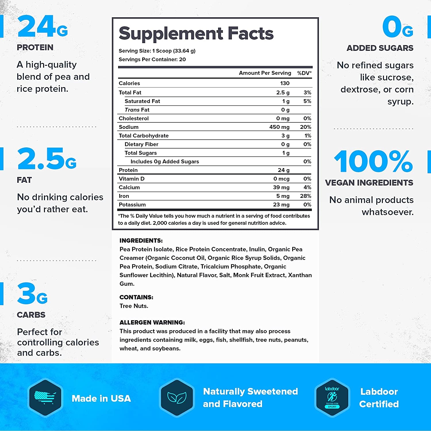 1. Plant+ is a high-quality blend of pea and rice protein powder.