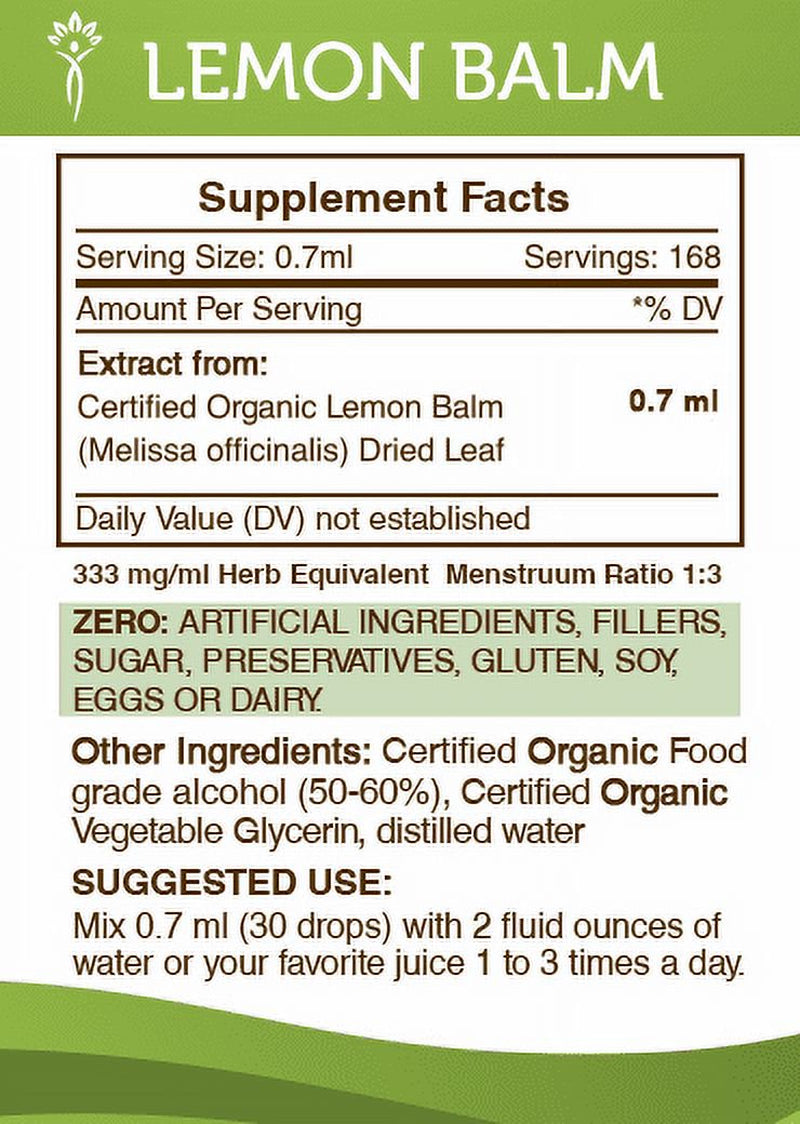 | Product Name | Lemon Balm Tincture Alcohol Extract, Organic Lemon Balm (Melissa officinalis) Relaxation 4 oz |