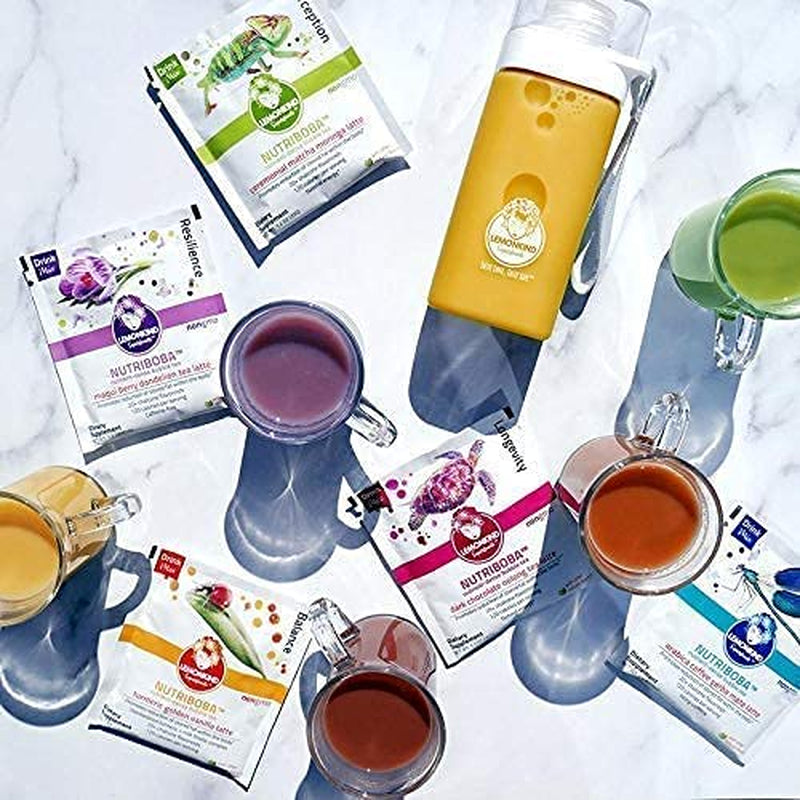 - Complete Organic Vegan Protein Gluten-Free Meal Supplement Boxed Set of 15 sachets – Includes 3 Ceremonial Matcha Moringa Latte Sachets, 3 Arabica Coffee Yerba Matte Latte Sachets, 3 Dark Chocolate Oolong Tea Latte Sachets, 3 Golden Turmeric Vanilla Latte Sachets, 3 Maqui Blueberry Dandelion Tea Latte Sachets and our beautiful 100% recyclable LEMONKIND BPA-Free Tritan Shaker Bottle.