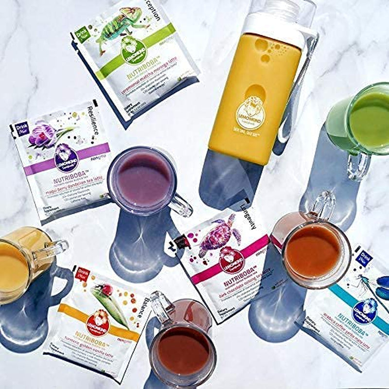 - Complete Vegan Protein Gluten-Free Meal Supplement Boxed Set of 15 sachets – Includes 3 Ceremonial Matcha Moringa Latte Sachets, 3 Arabica Coffee Yerba Matte Latte Sachets, 3 Dark Chocolate Oolong Tea Latte Sachets, 3 Golden Turmeric Vanilla Latte Sachets, 3 Maqui berry Dandelion Tea Latte Sachets and our beautiful 100% recyclable LEMONKIND BPA-Free Tritan Shaker Bottle.