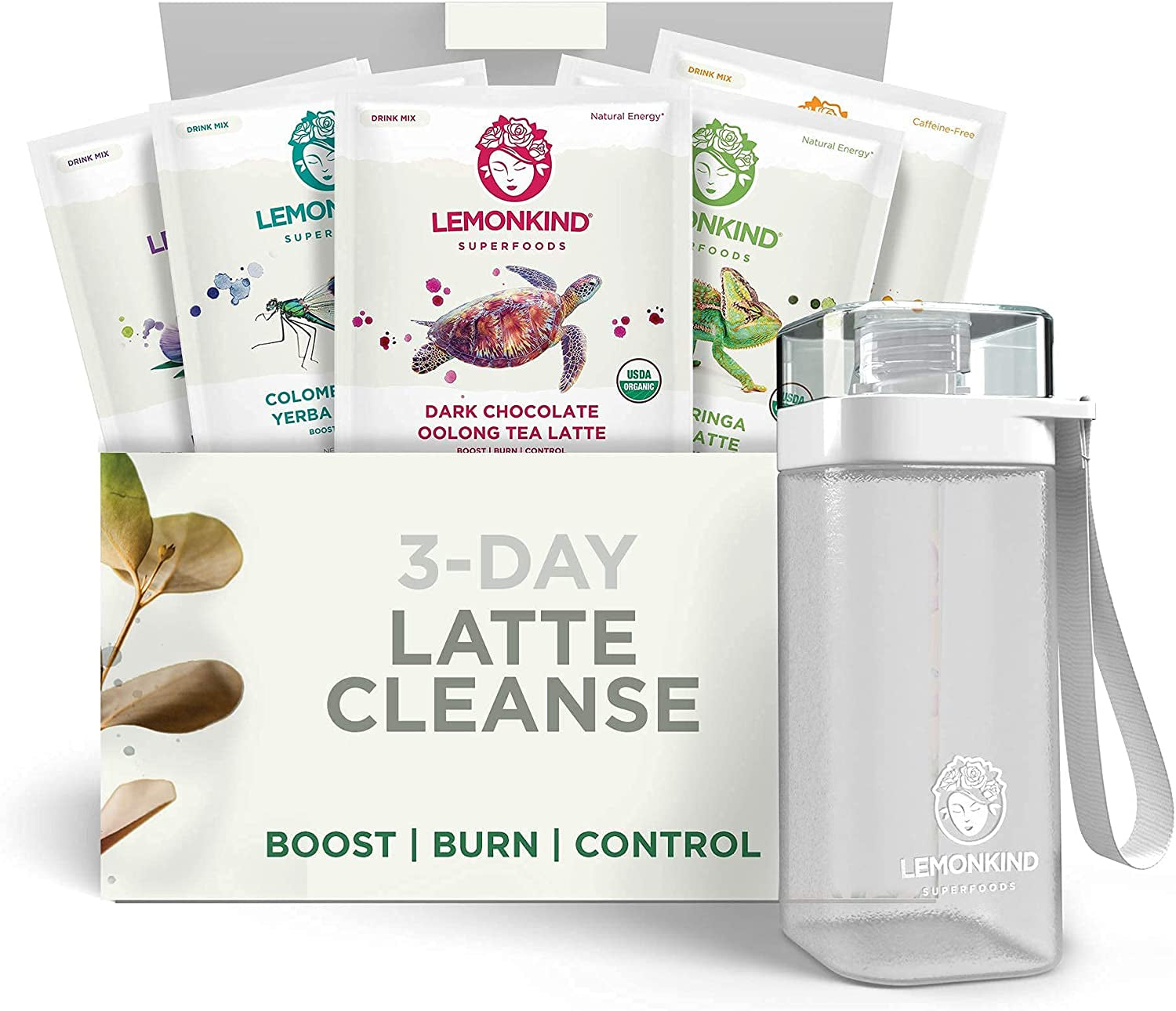 LEMONKIND Fat-Burn & Hunger Control Organic Latte Cleanse Bundle, 75 Servings