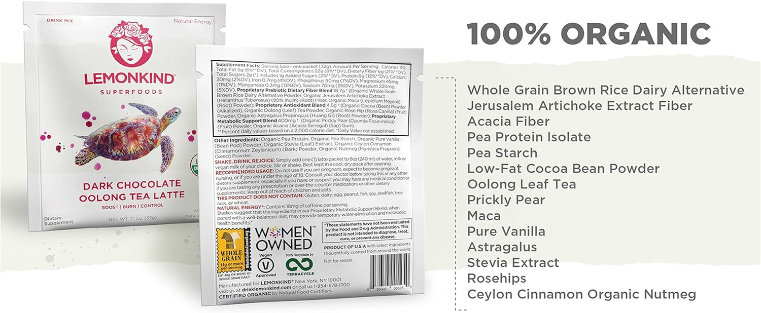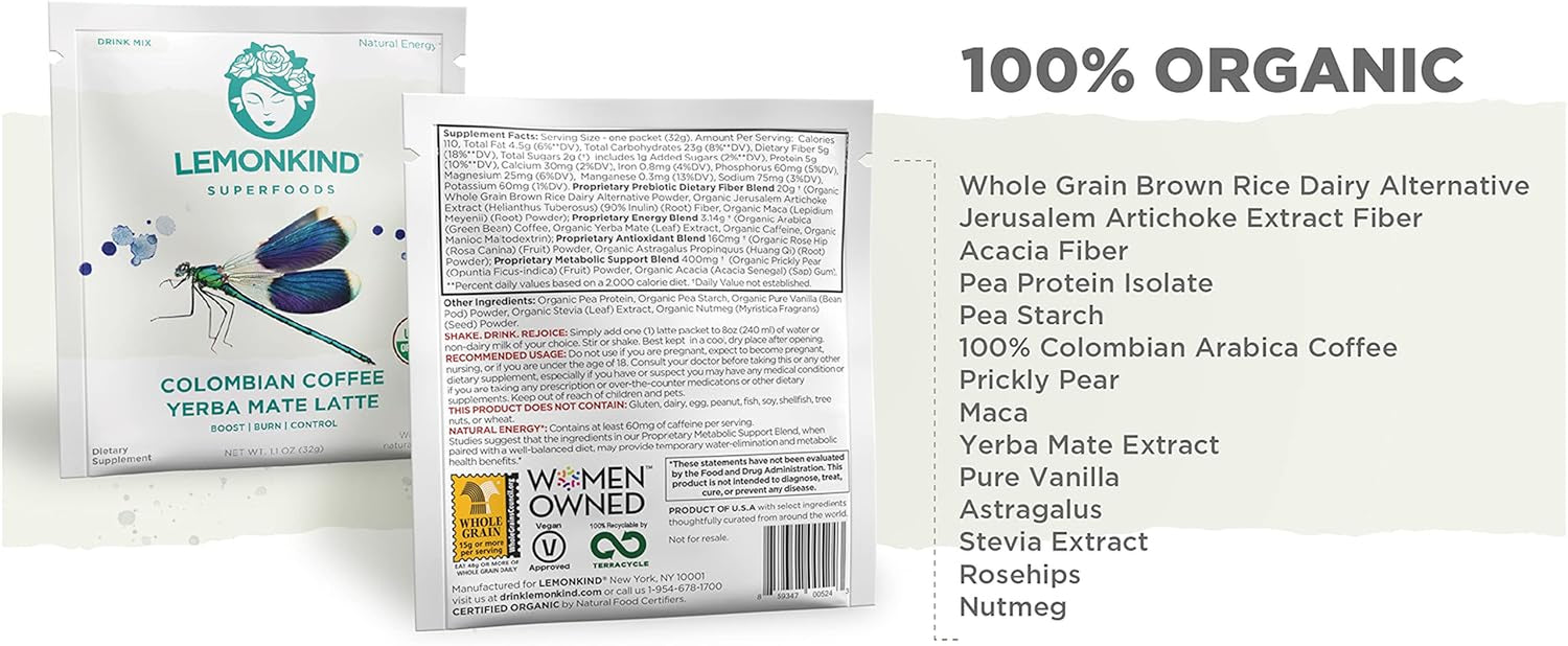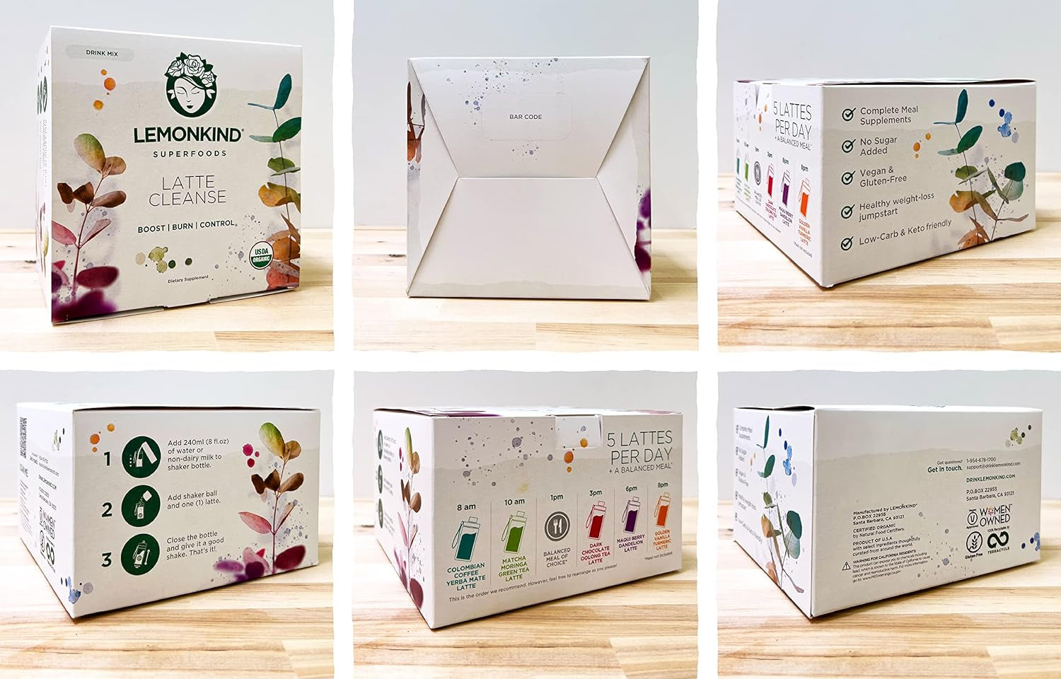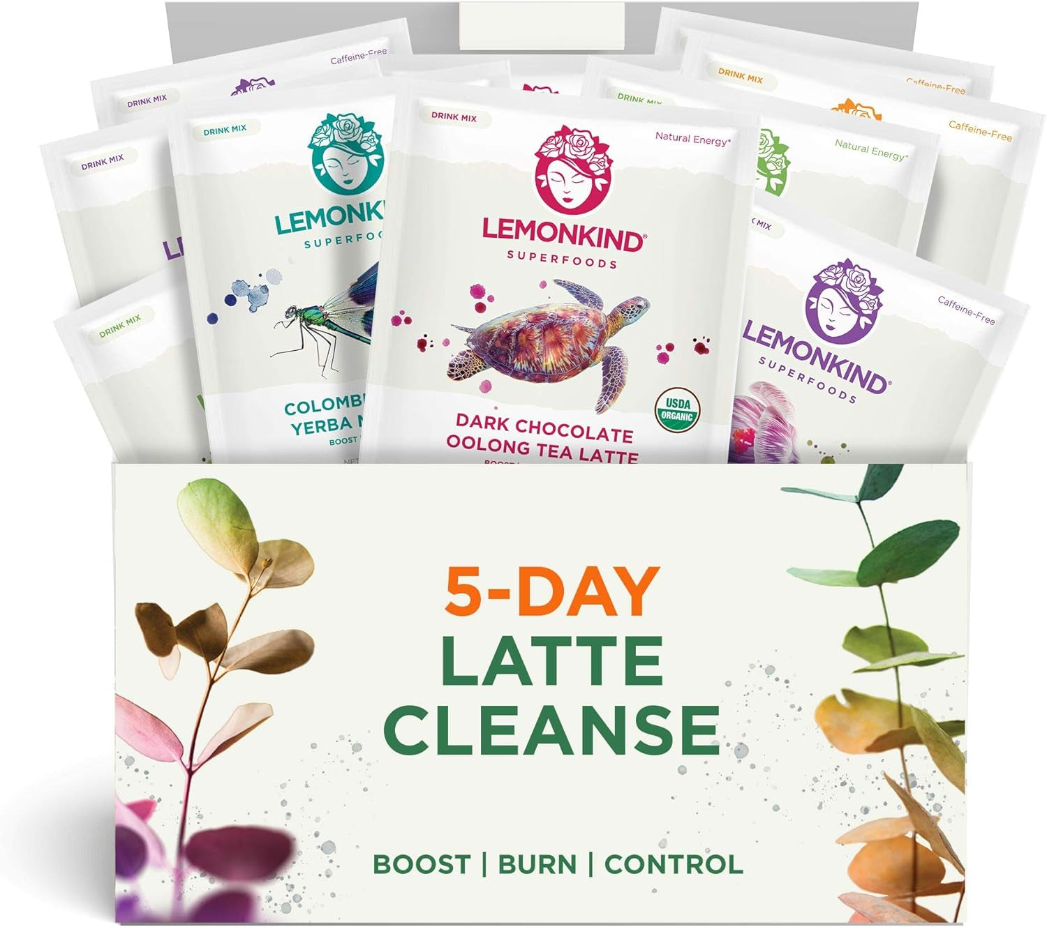LEMONKIND Organic 5 Day Fat-Burn Cleanse for Weight Loss Jumpstart & Detox – Plant-Based & Gluten-Free, 25 Vegan Lattes (Coffee, Chocolate, Vanilla, Maqui & Matcha)