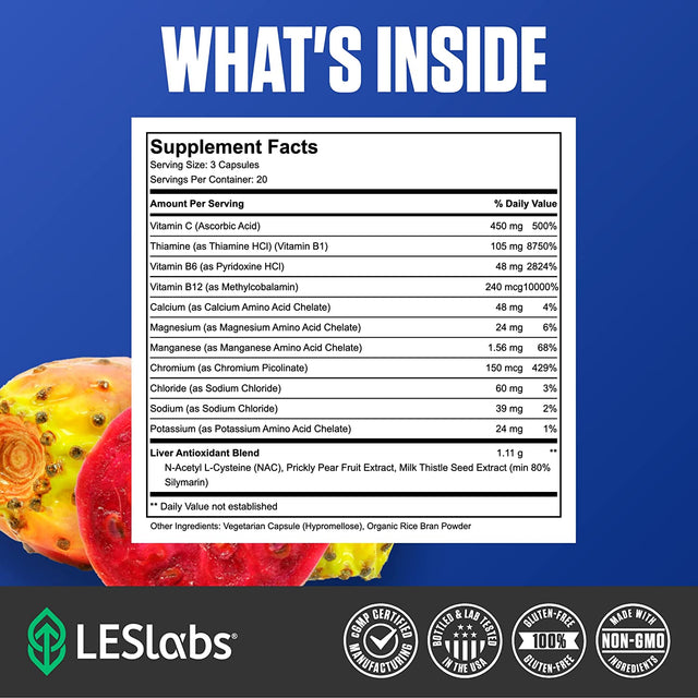 LES Labs Detoxx – Better Mornings & Recovery, Liver Support, Electrolyte Replenishment & Glutathione Support – Prickly Pear, Milk Thistle & NAC – Non-Gmo Supplement – 60 Capsules