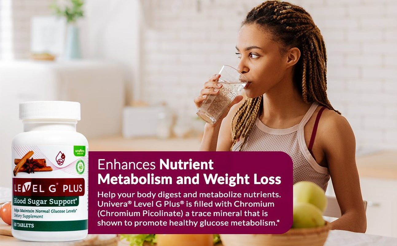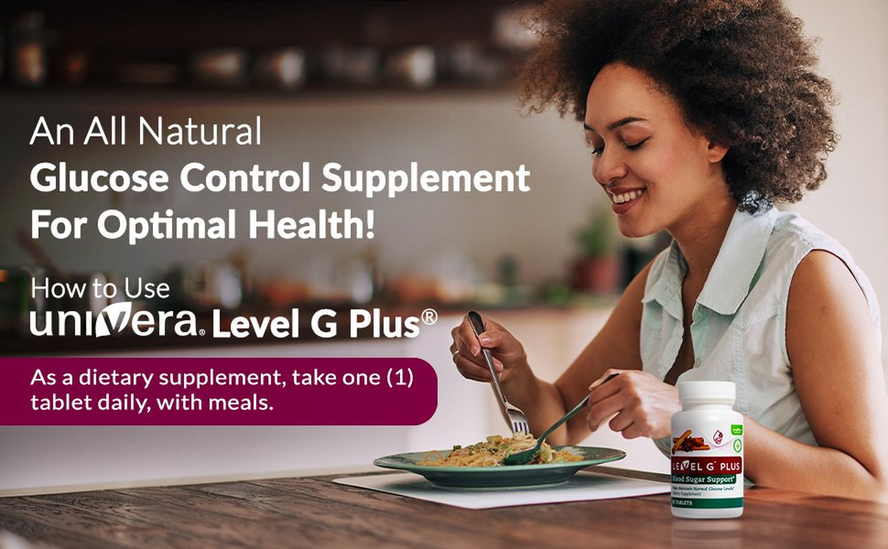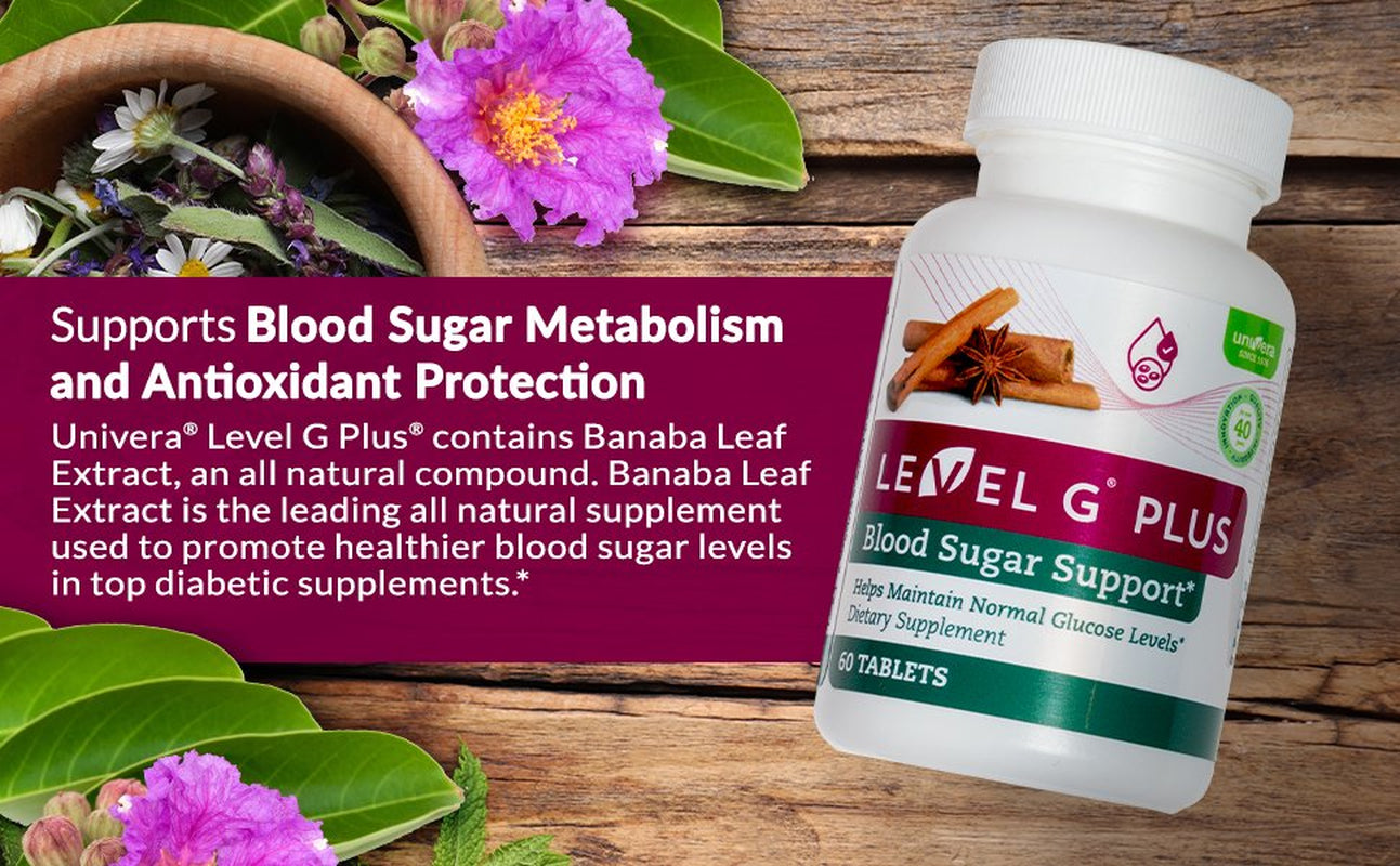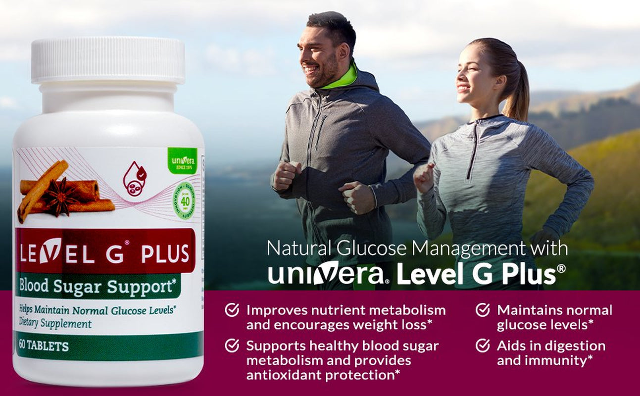 Level G Plus - Univera’s newest blood sugar support formula includes effective botanical and trace mineral compounds shown to maintain normal glucose levels. It is an advanced yet all-natural dietary supplement to promote a healhy glucose metabolism. *