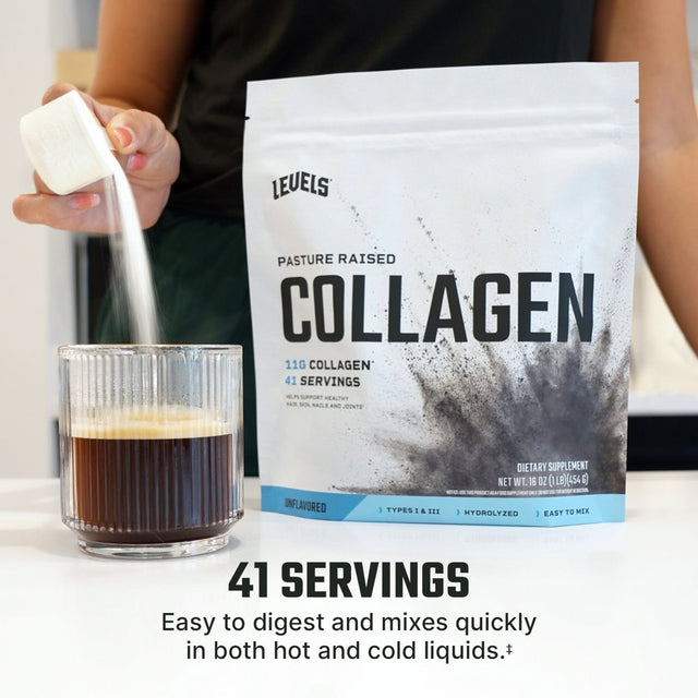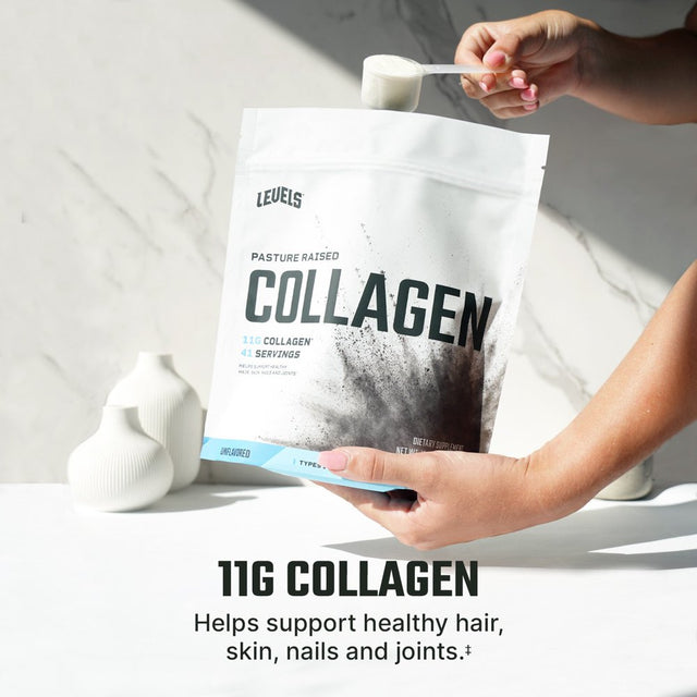 - LEVELS COLLAGEN: Each scoop of Levels Unflavored Collagen contains 11g of types 1 & 3 collagen and is loaded with glycine, proline, hydroxyproline, alanine, and arginine.
