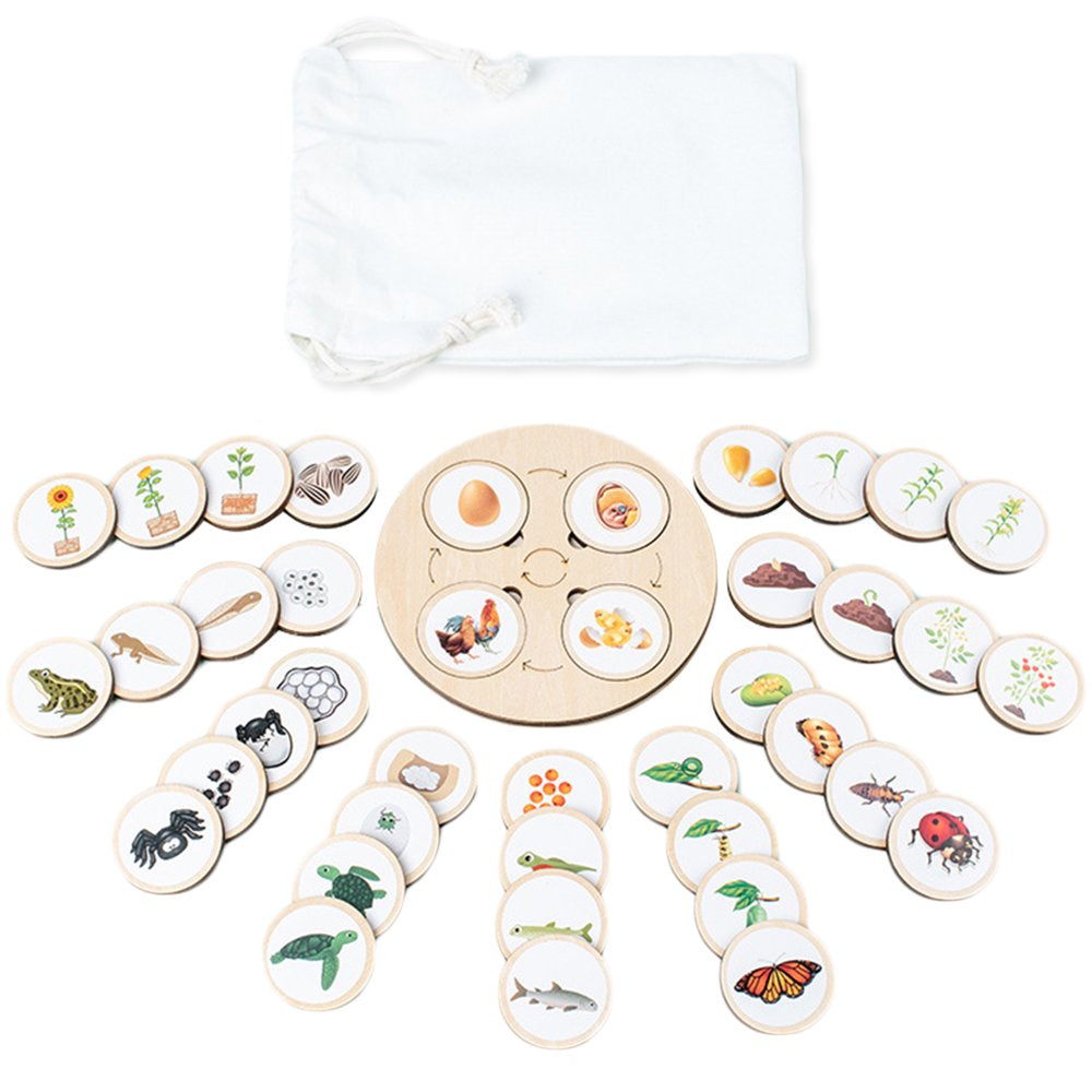 Lieonvis Wooden Life Cycle Tray Children Montessori Life Cycle Puzzle Kit of Animals Plants and Insects Early Educational Jigsaw Puzzles Animal Figures Matching Game for Preschool Kids Gift